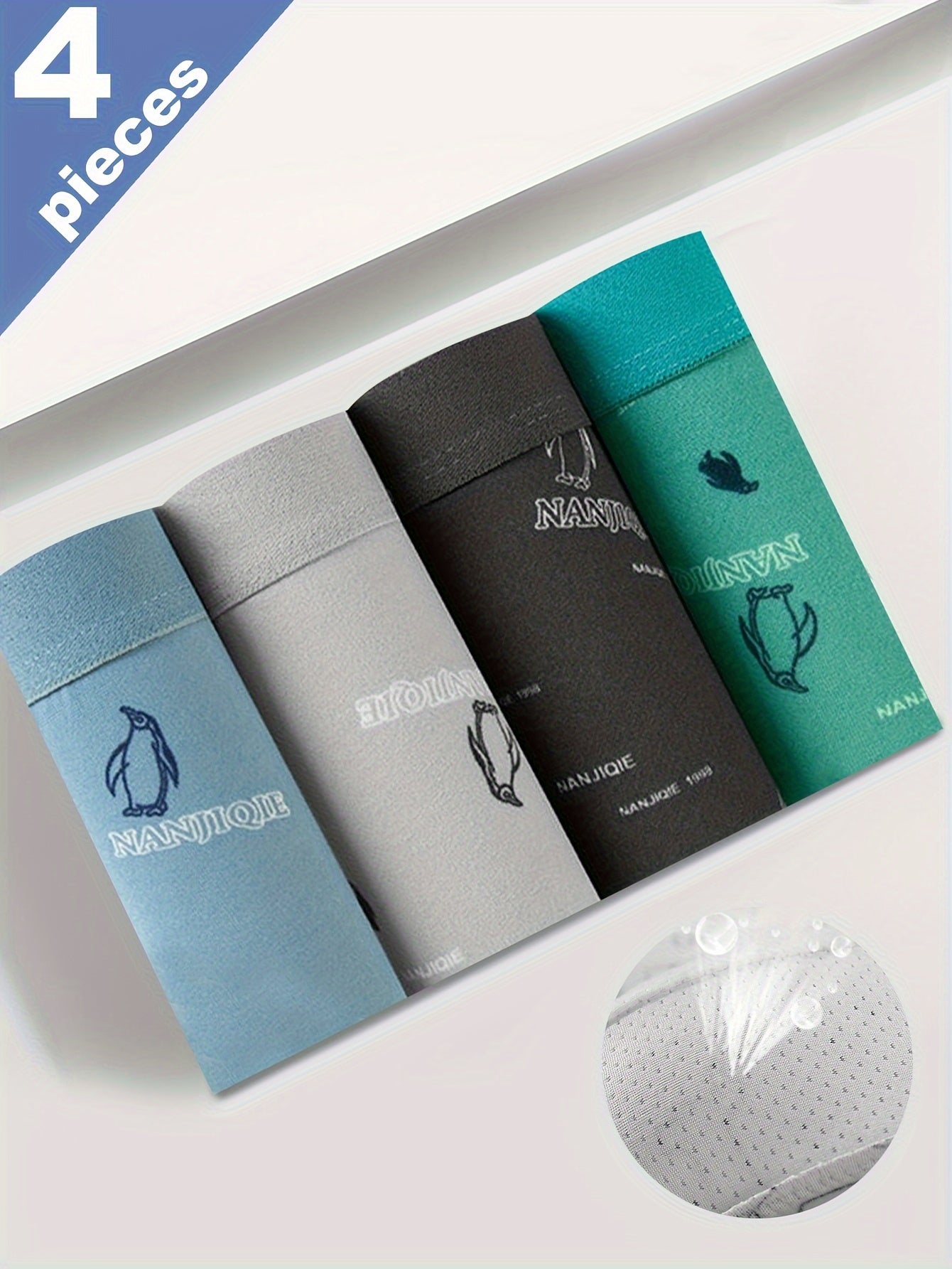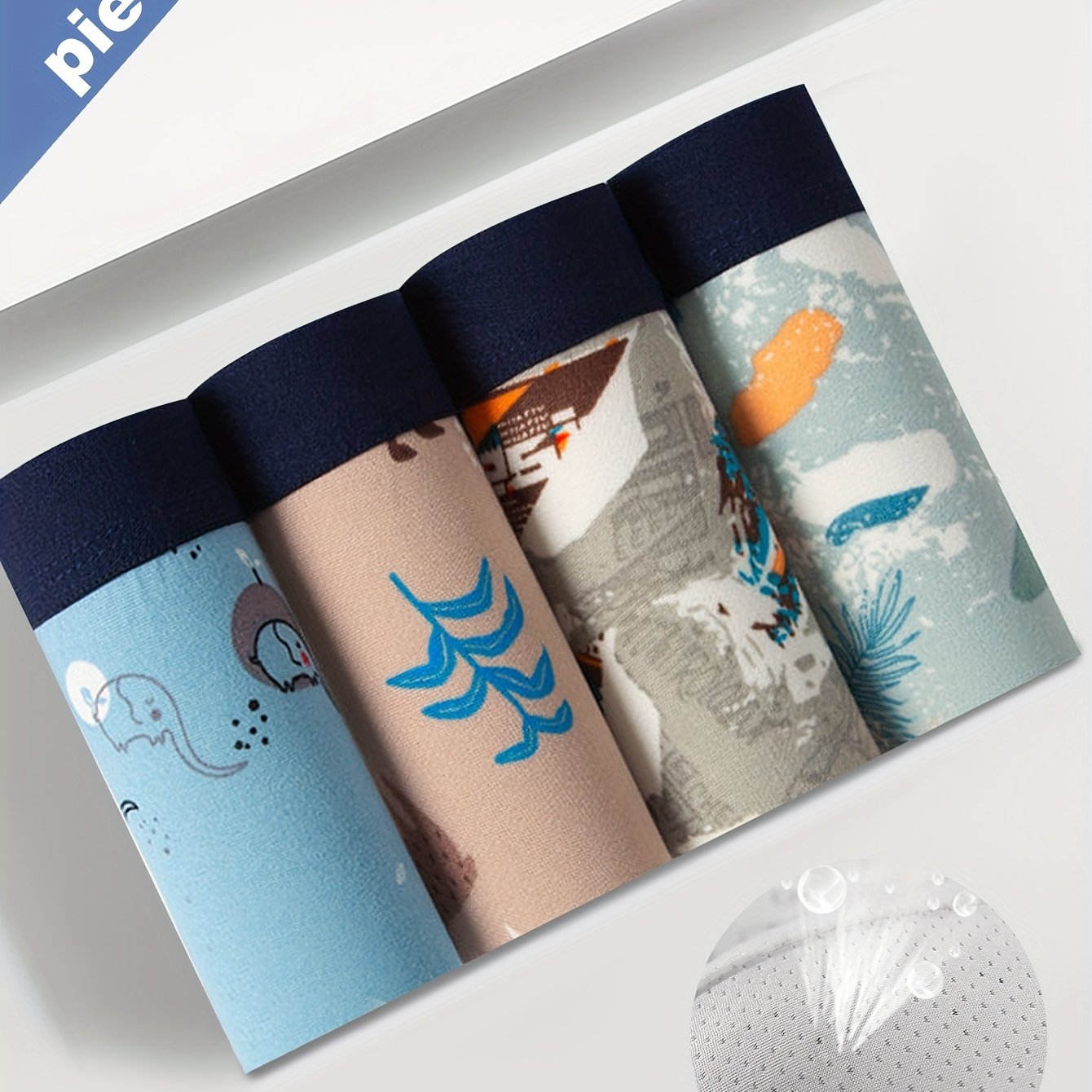 Men's Boxer Briefs 4-Pack Polyester Stretch Fabric Mid-Thigh Random Print