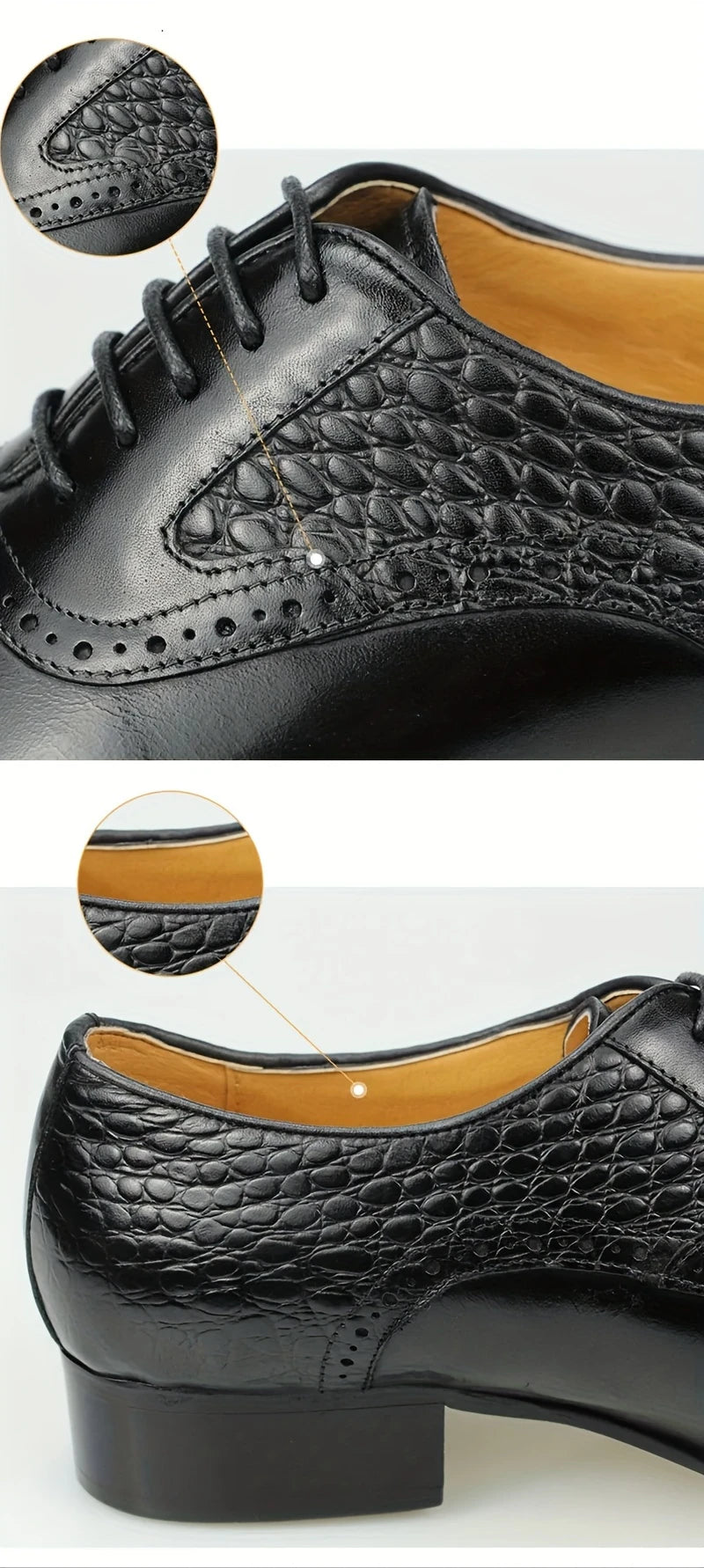 Men's Black Oxford Dress Shoes Topgrain Leather Crocodile Print Pointed Toe Business Formal