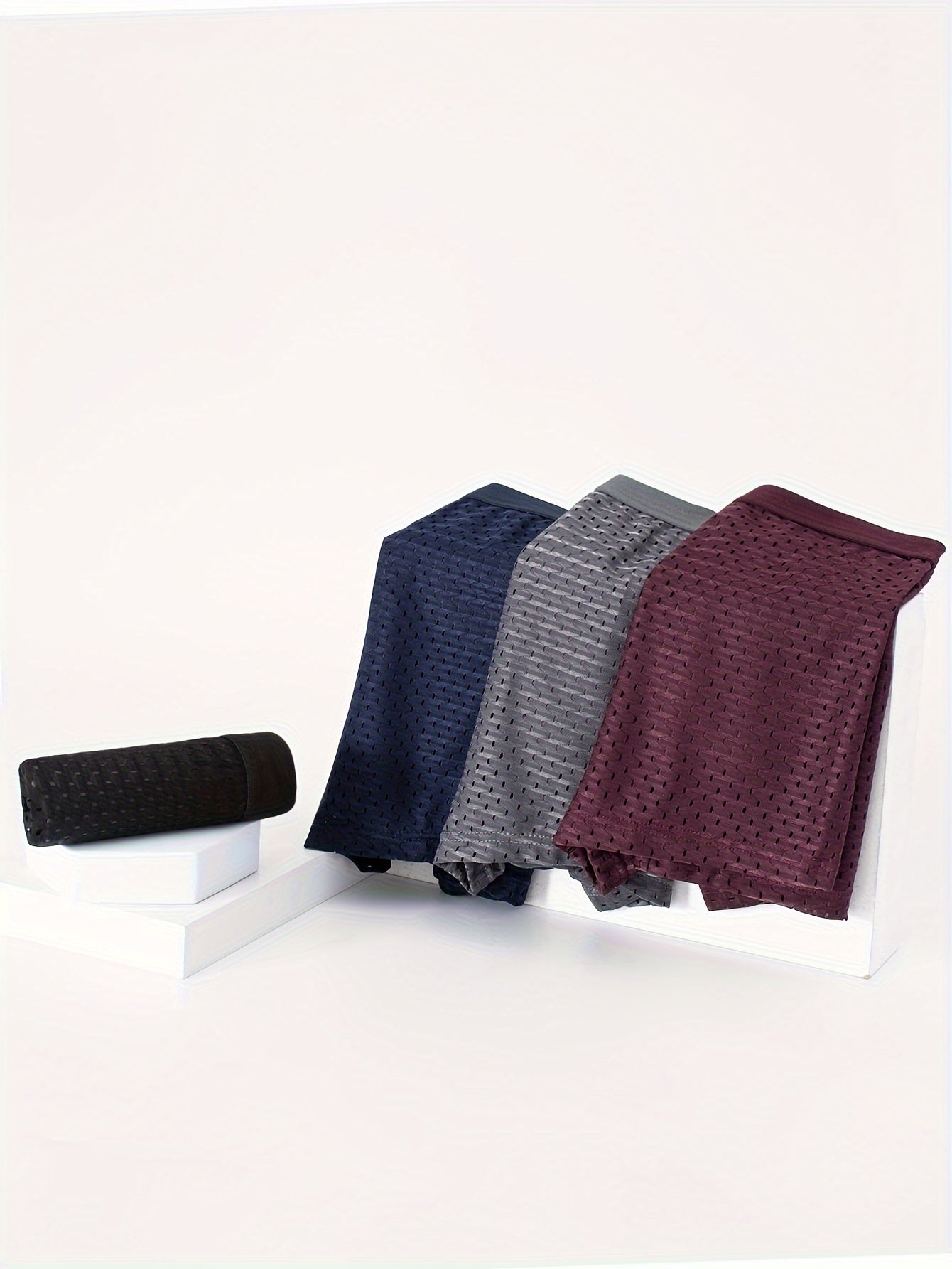 Men's Breathable Mesh Boxer Briefs 4 Pack Semi-Sheer Shortie Polyester Elastane