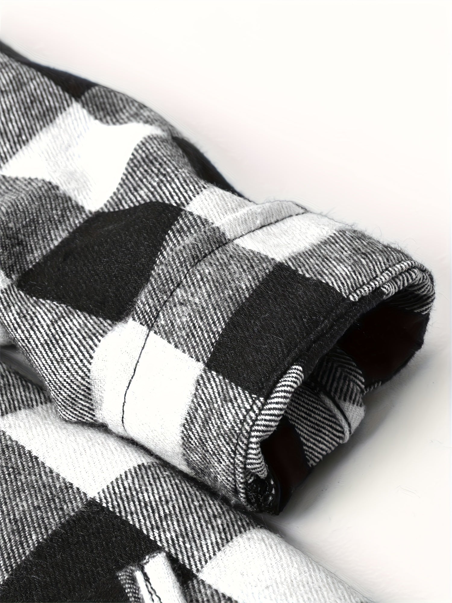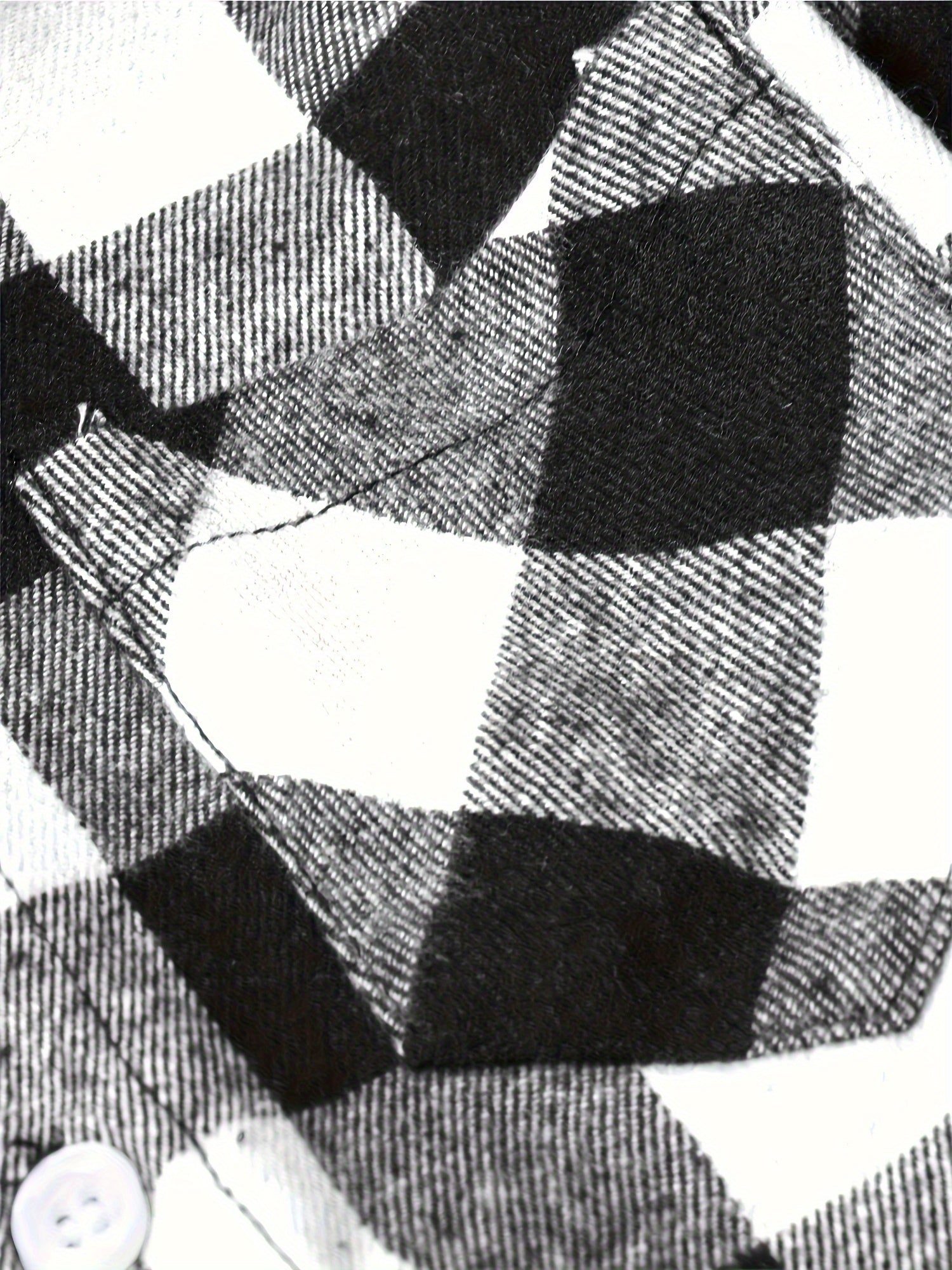 Men's Plus Size Gingham Flannel Shirt Casual Button Down Polyester Cotton