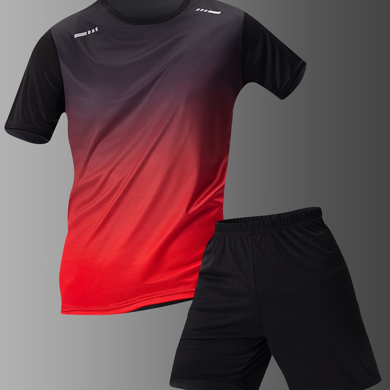 Men's Summer Sportswear Set Gradient Short Sleeve T-Shirt and Elastic Waist Shorts