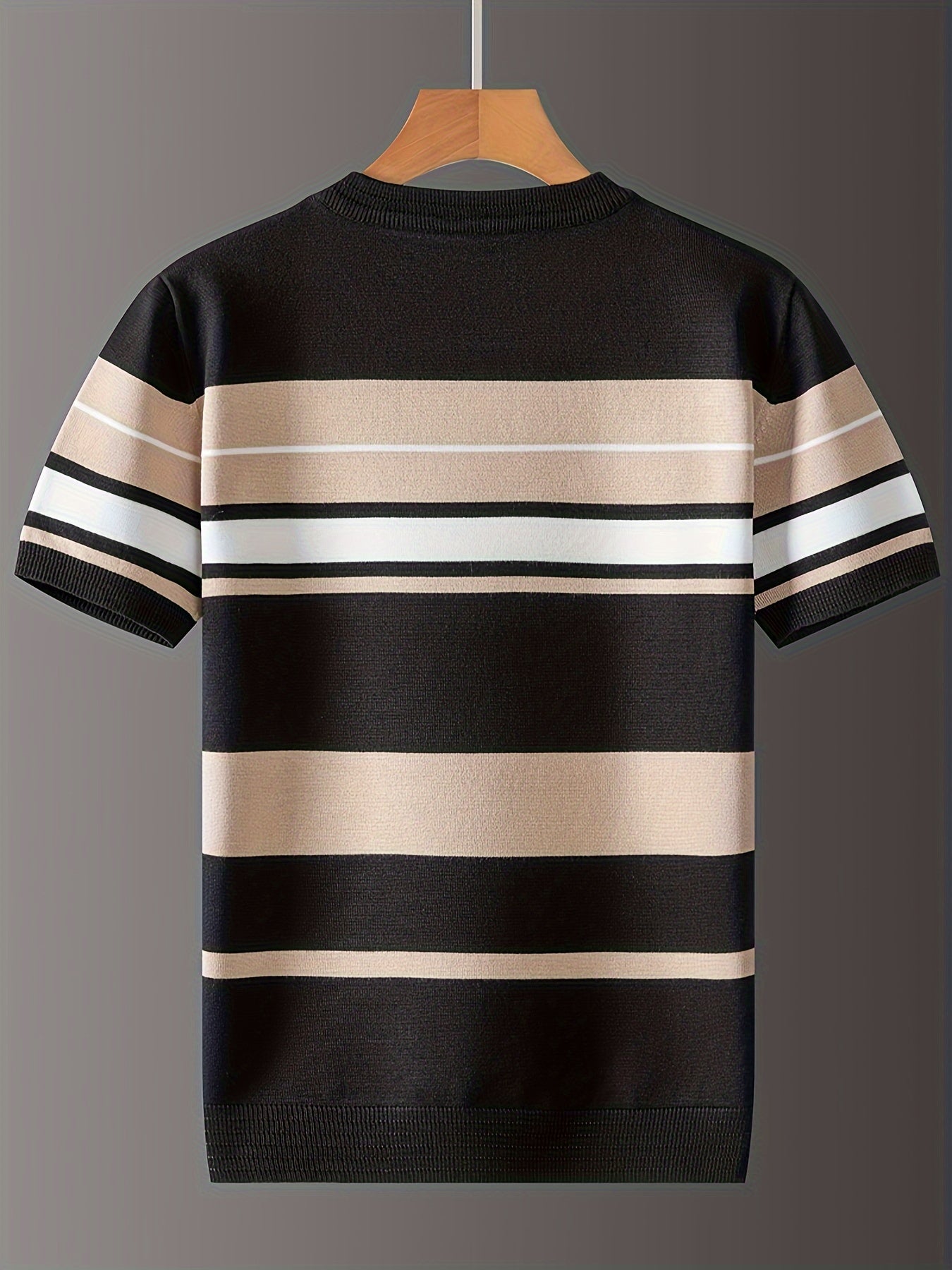 Men's Striped Crew Neck Sweater with Medium Stretch for Spring Fall