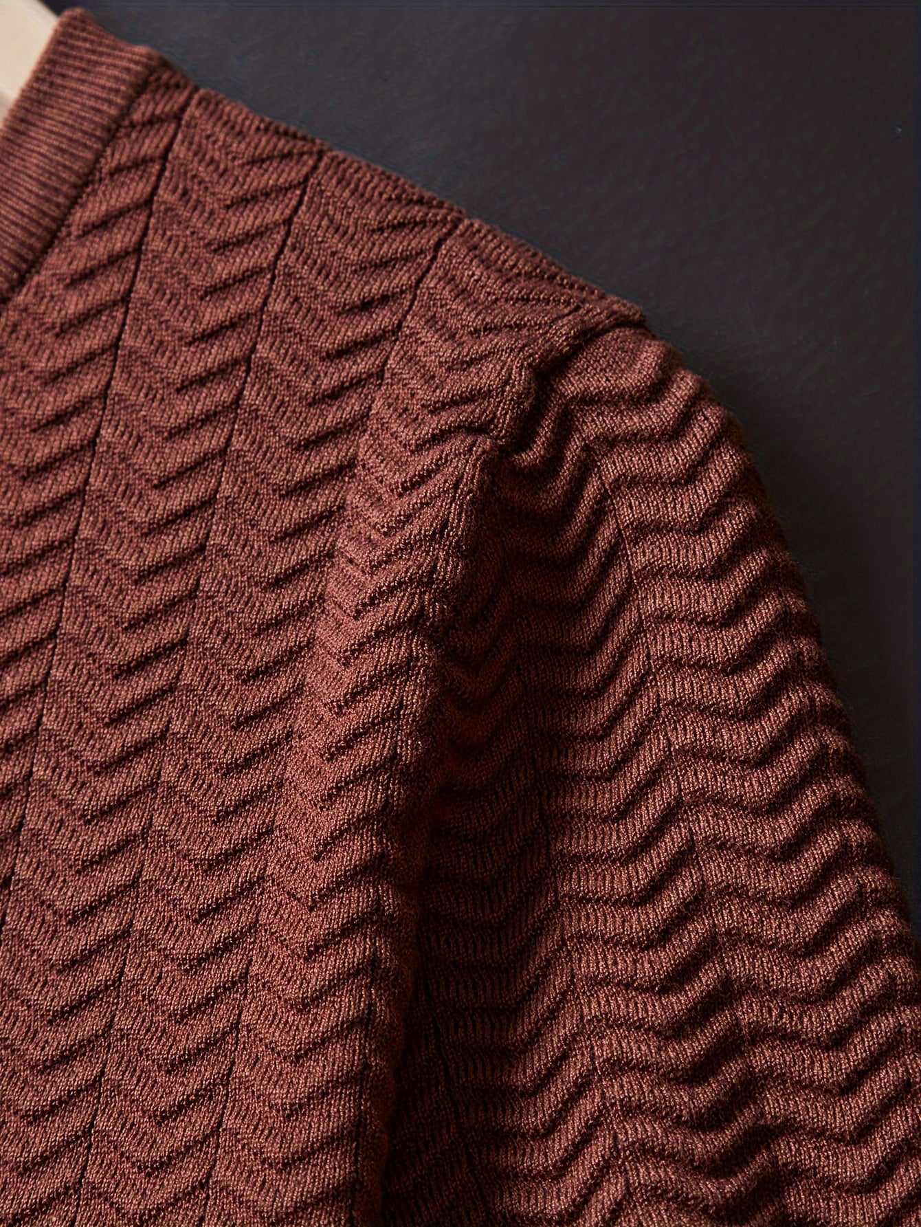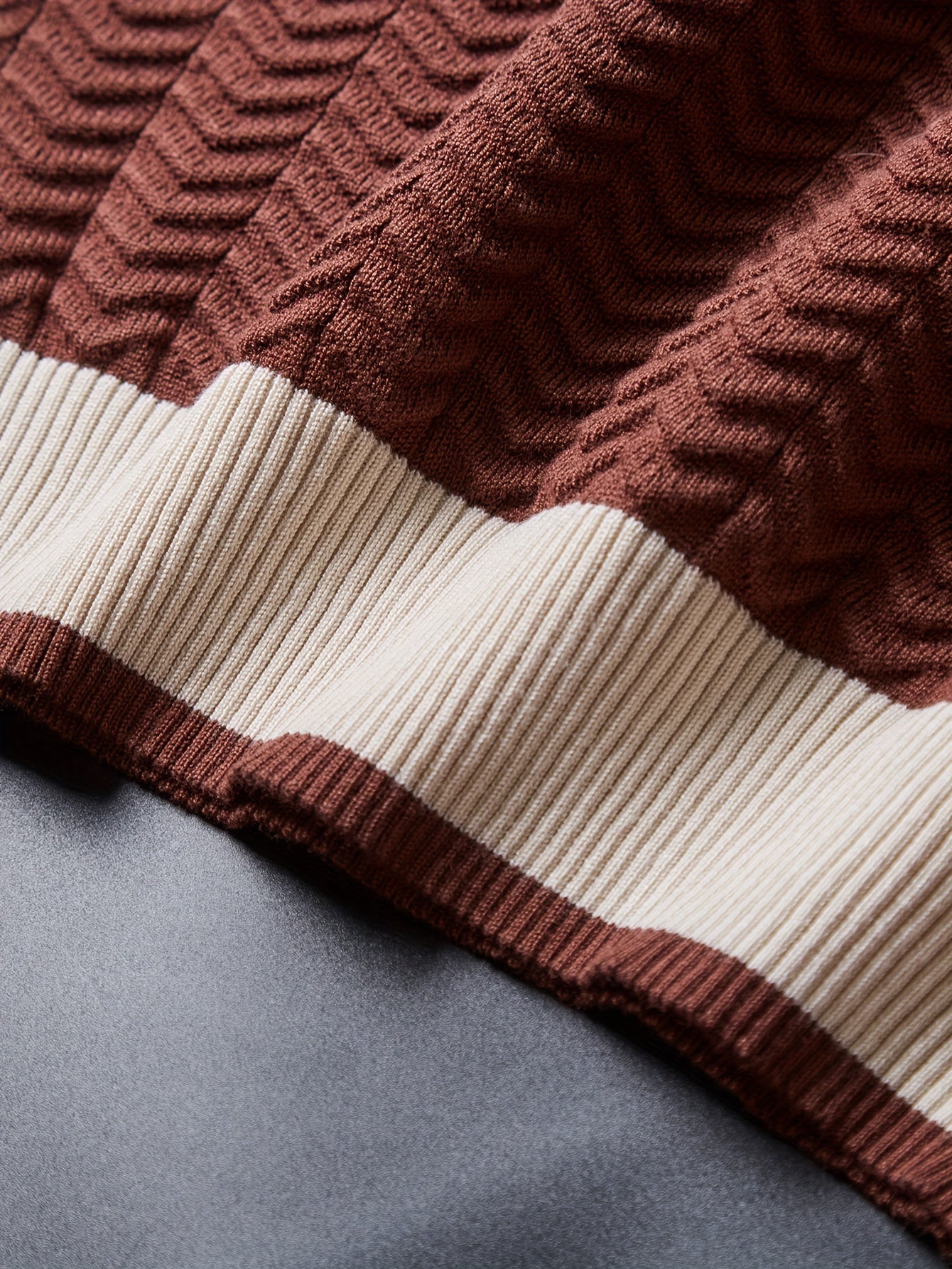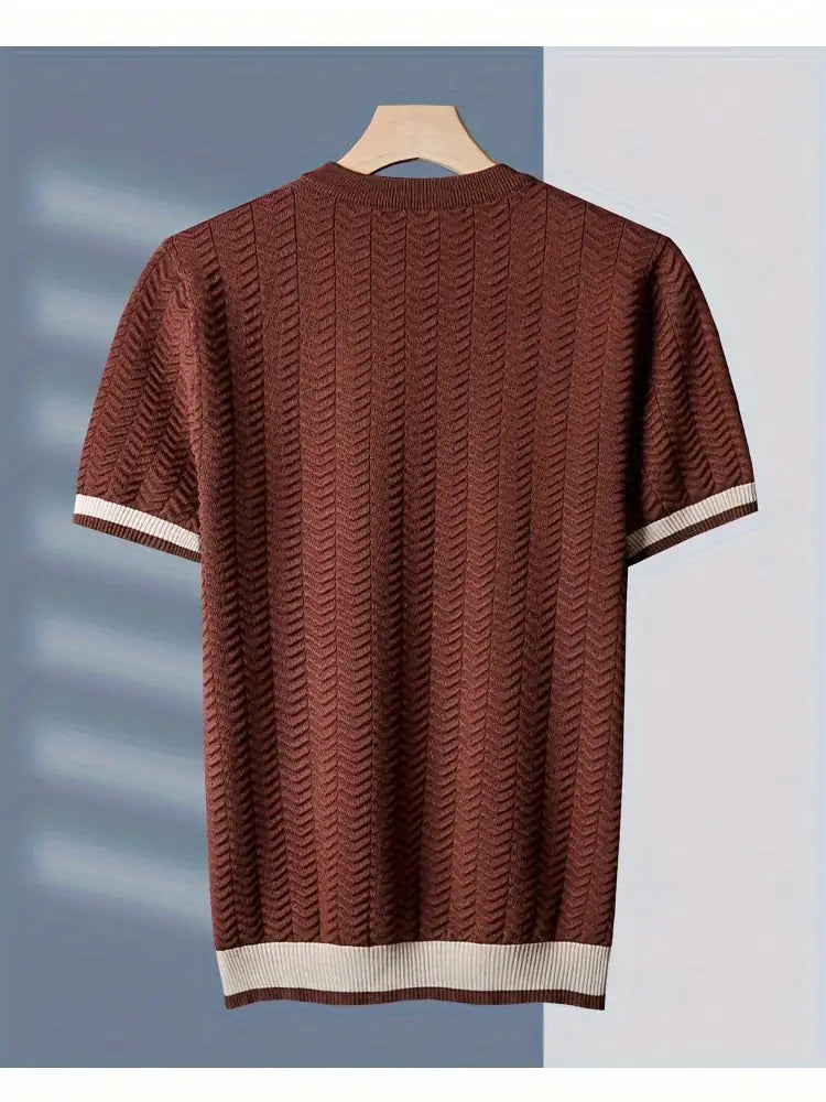Men's Striped Knitted Short Sleeve Crew Neck Sweater for Fall Winter Street Style