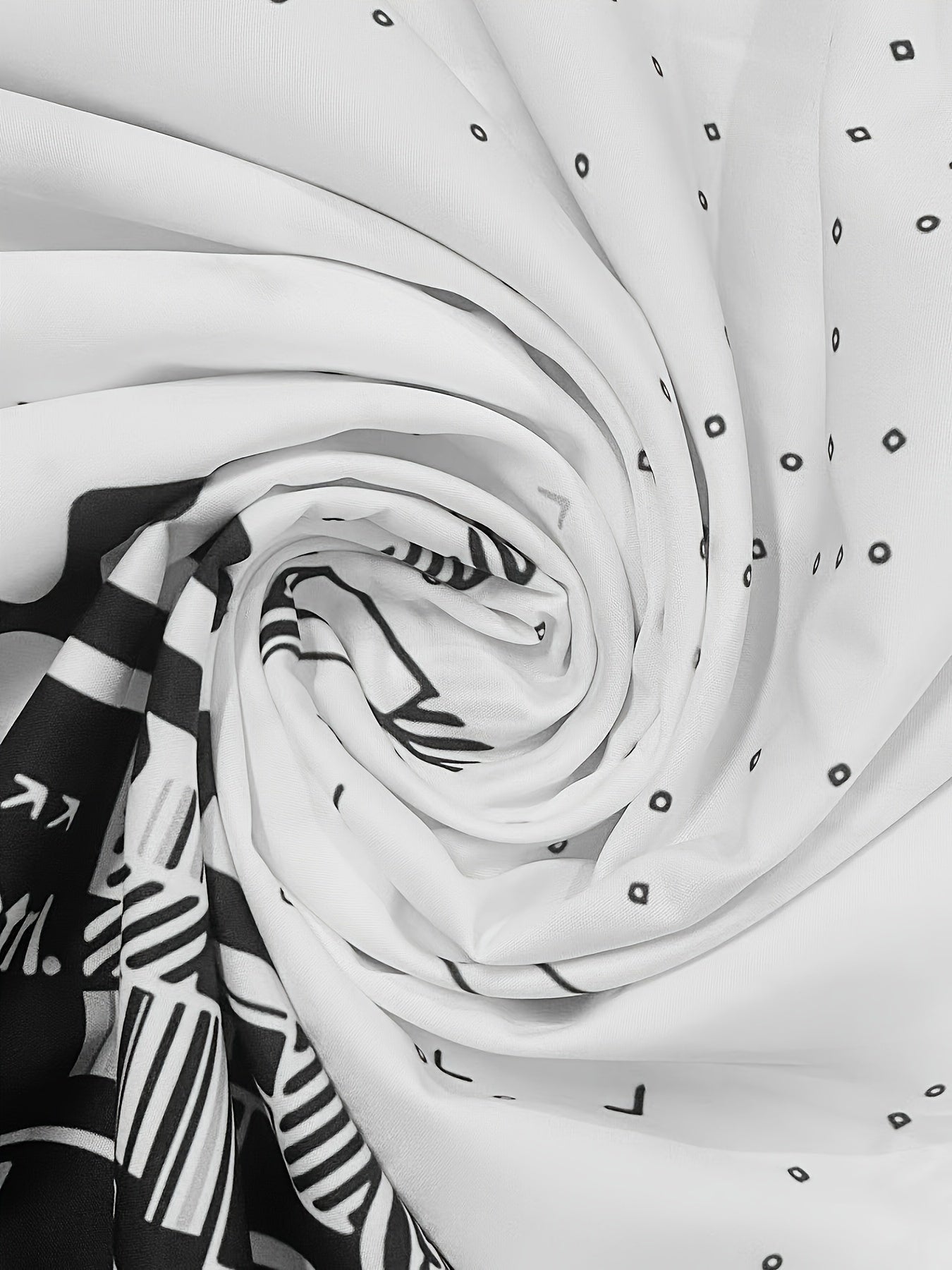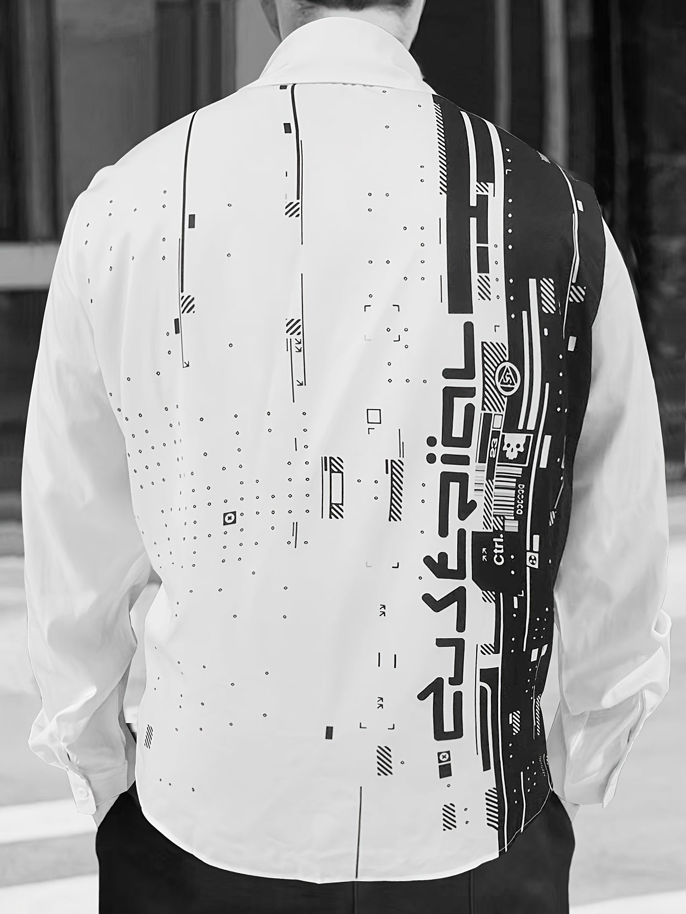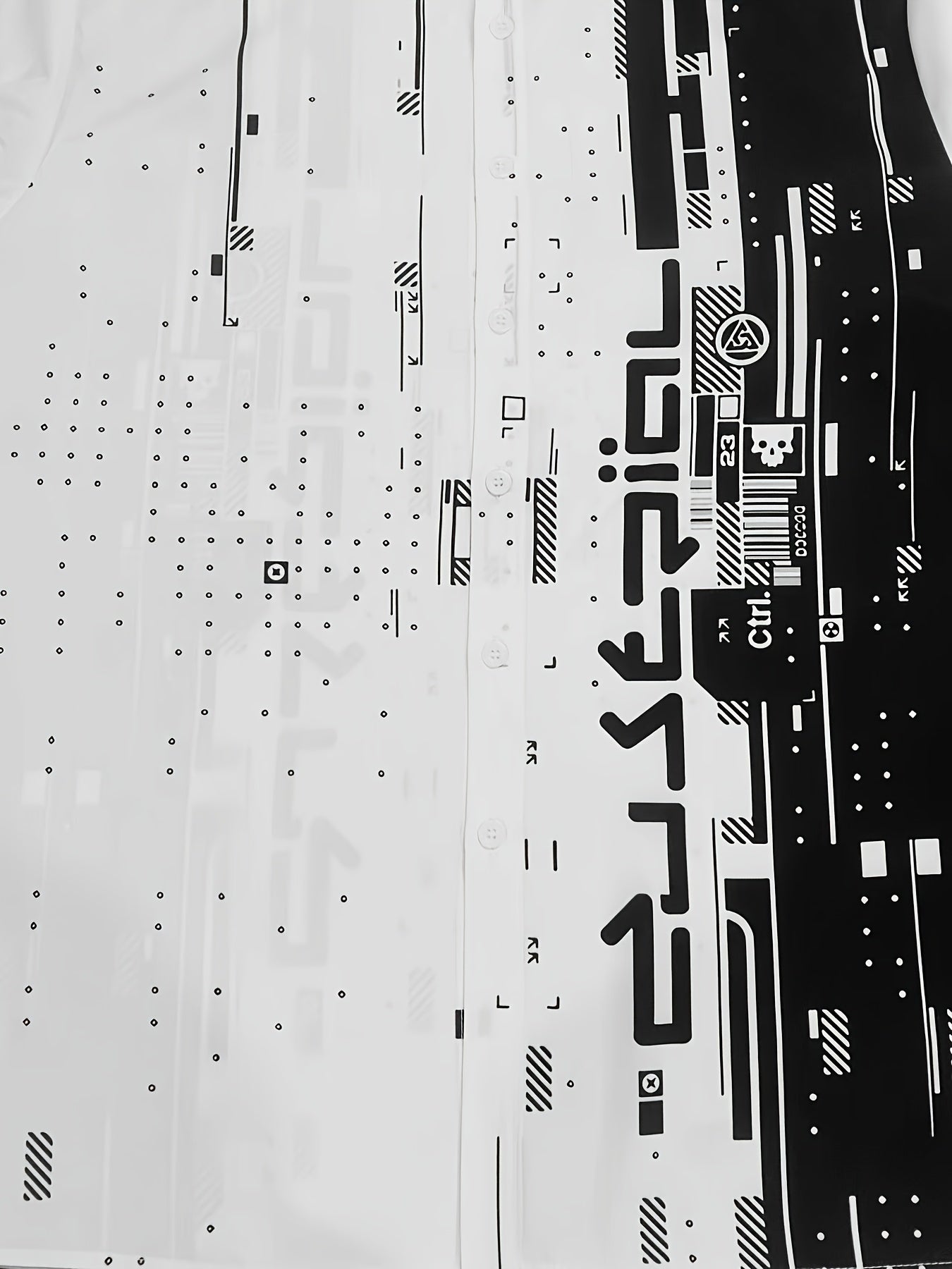 Men's Plus Size Casual Shirt Black and White Geometric Print Polyester Spandex Woven