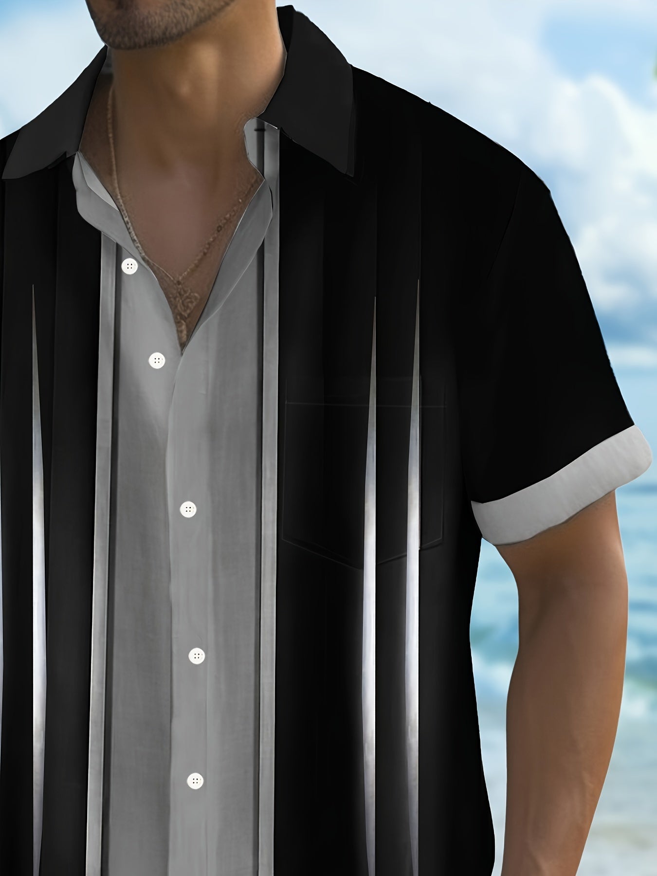 Men's Retro Bowling Shirt with Aurora Gradient Short Sleeves Button Pocket Summer Casual