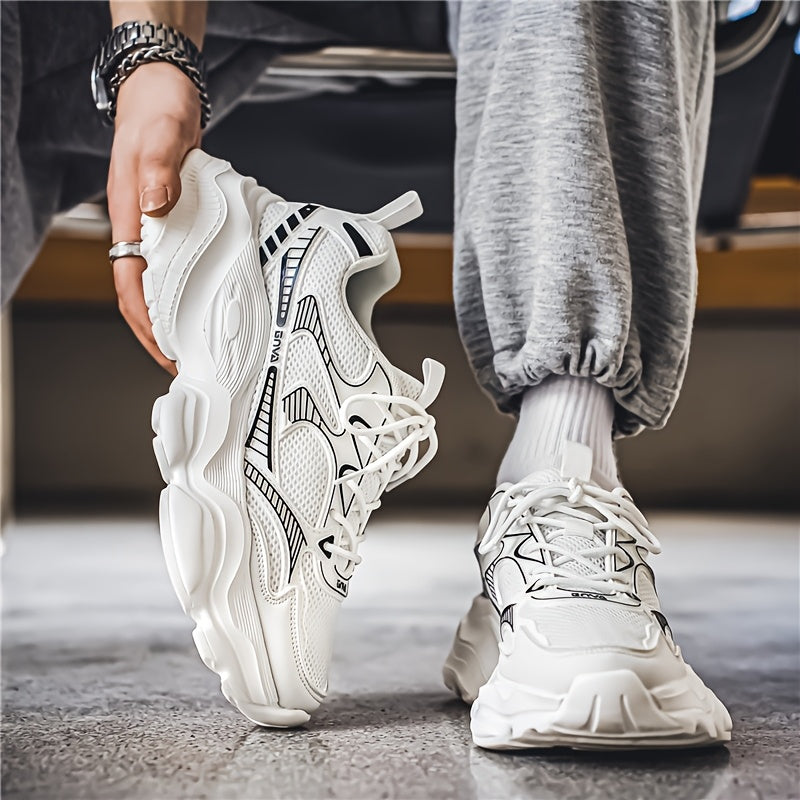 Men's Mesh Casual Sneakers Low Top Lace-Up All-Season Vintage Chunky Shoes