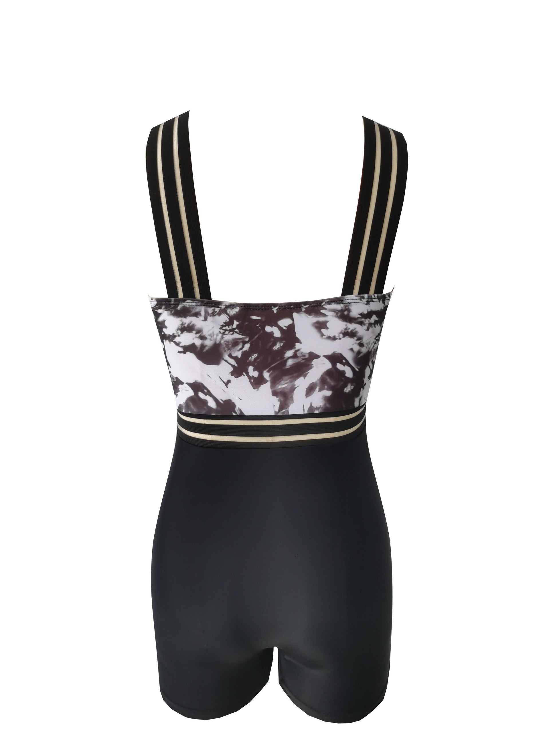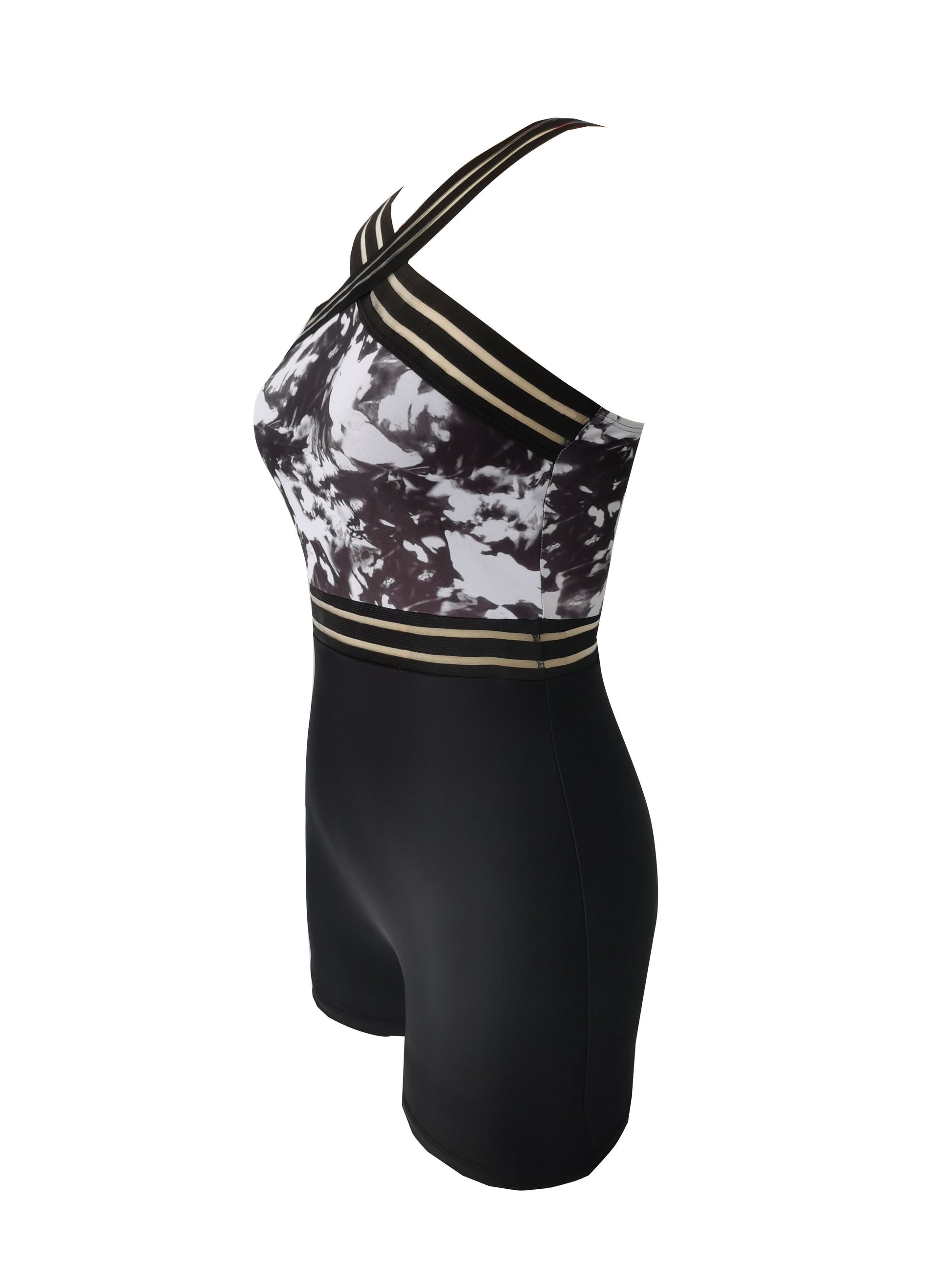 Women's Mesh One Piece Swimsuit with Criss Cross Neck and Boxer Short Bottom