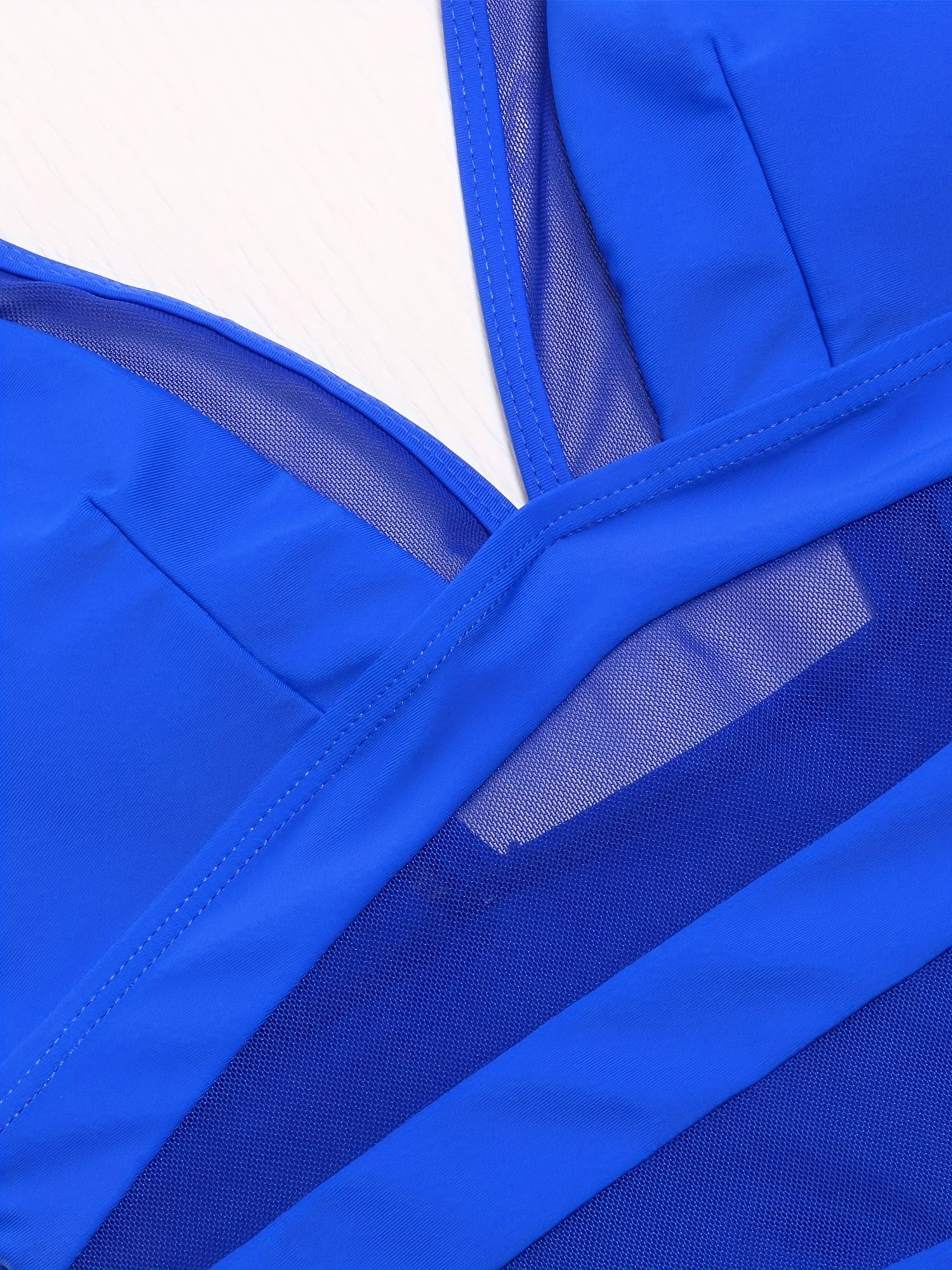 Women's Mesh V-Neck One Piece Swimsuit Tummy Control Backless High Cut Solid Color