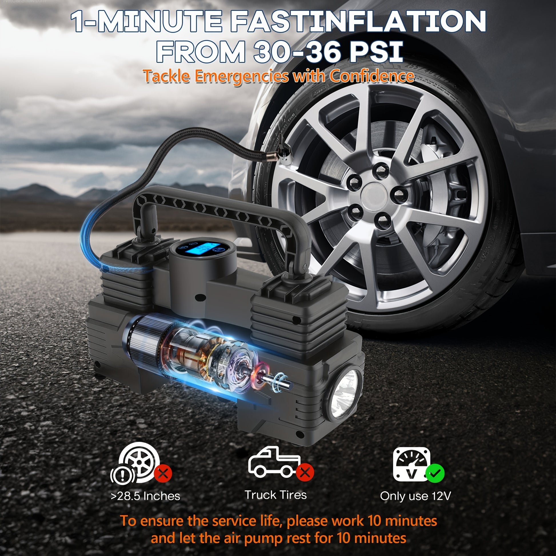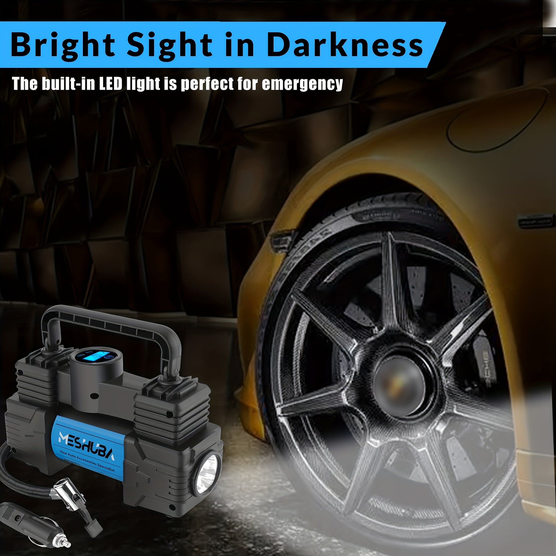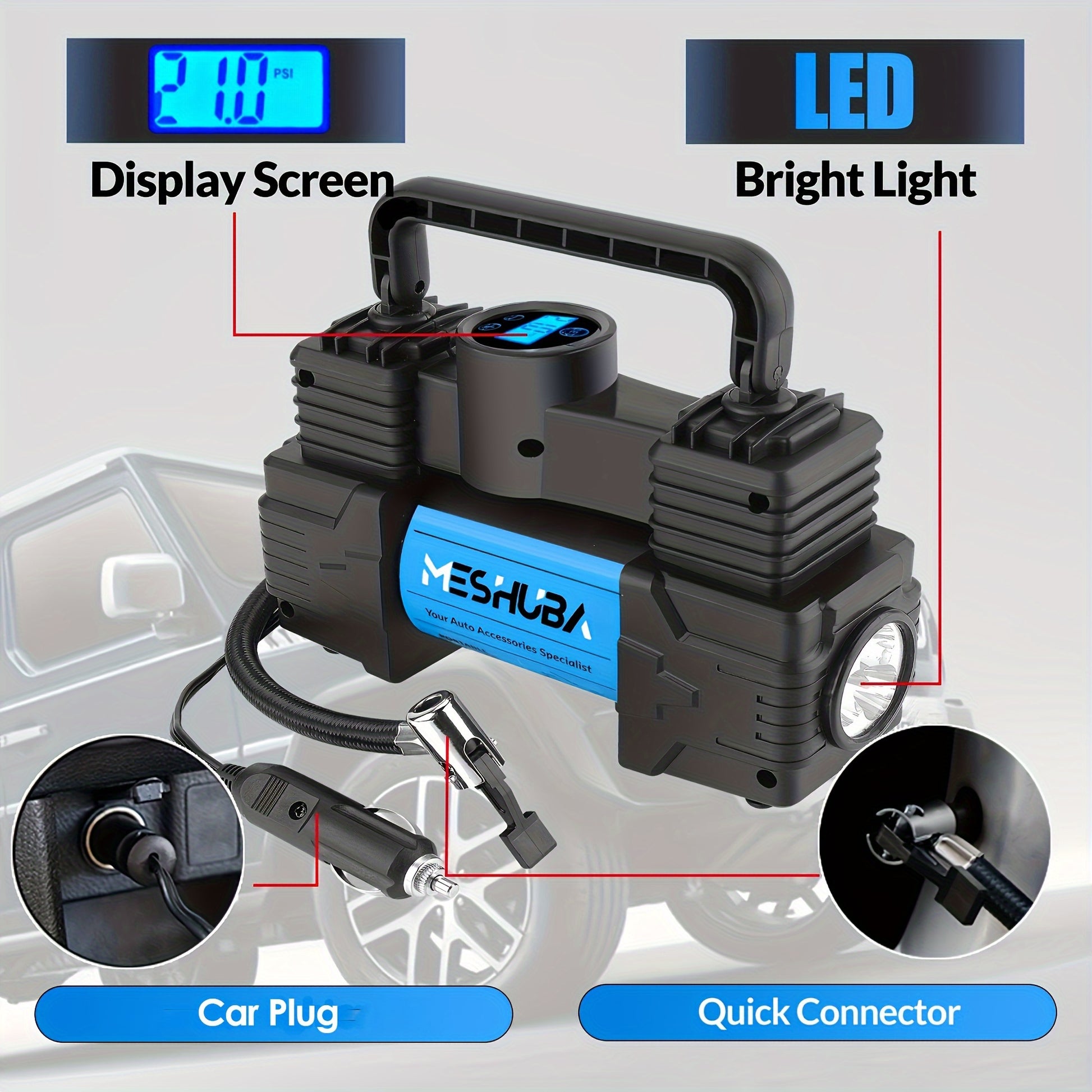 12V Portable Tire Inflator Blue with Digital Pressure Gauge and Car Plug