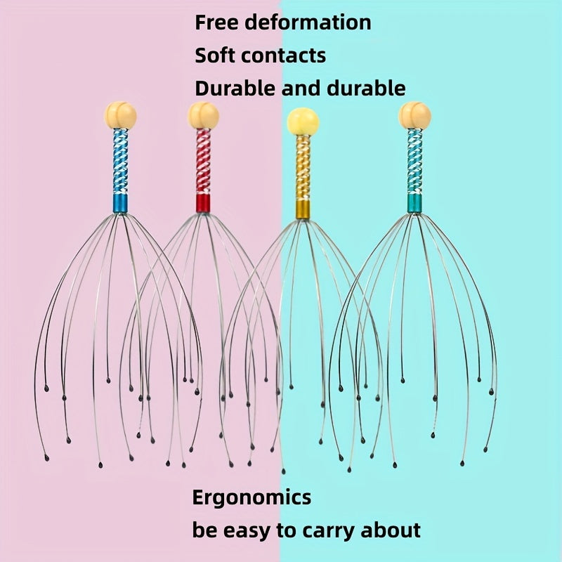 Metal Head Massager Octopus Design Deep Tissue Scalp Massage Tool Portable for Home Travel