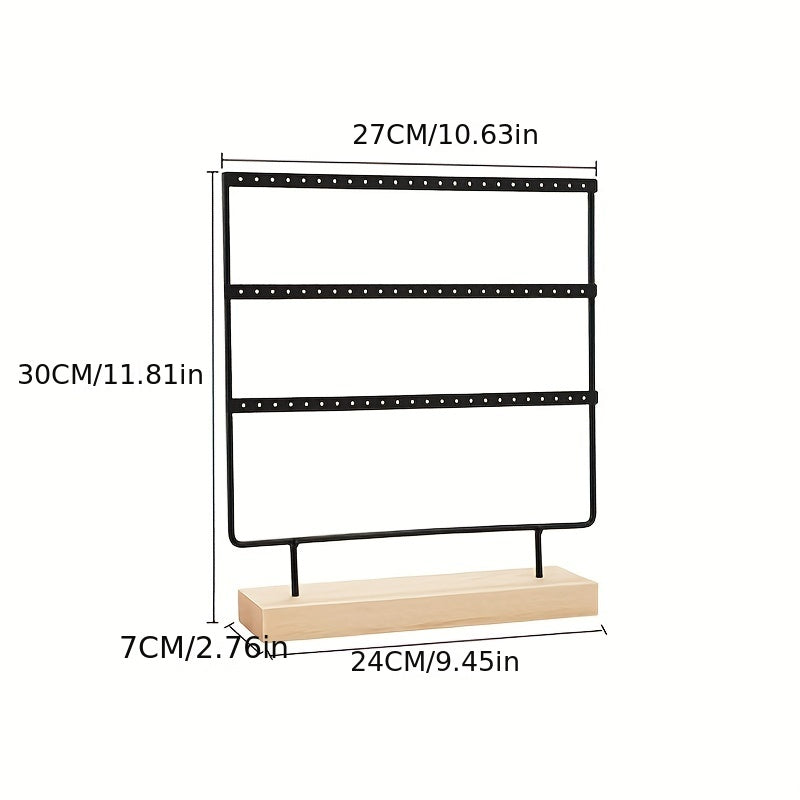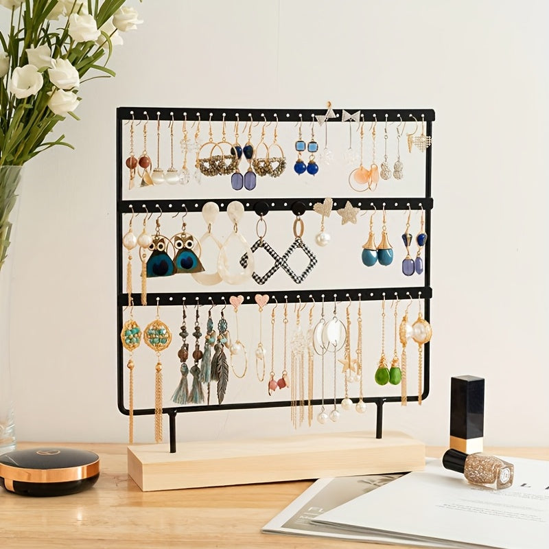 Wooden Jewelry Organizer Tree with 3 Layers and 72 Earring Holes for Display and Storage