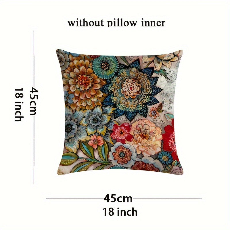 Linen Blend Throw Pillow Cover with Butterflies and Flowers 45.72cm Square