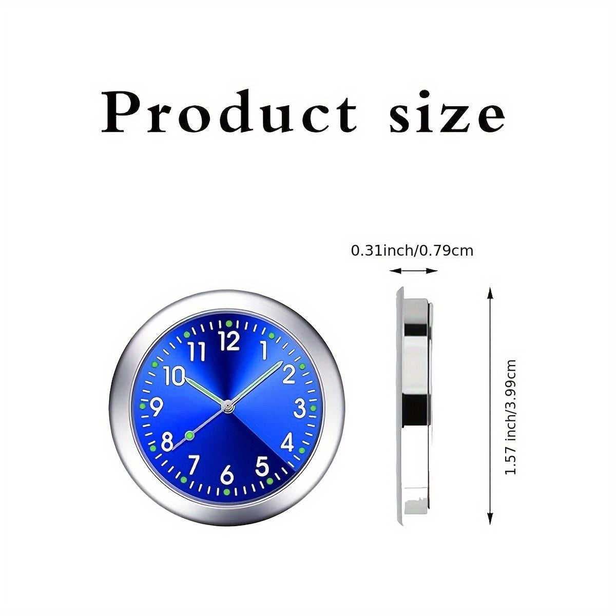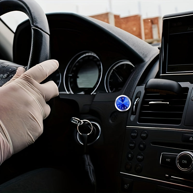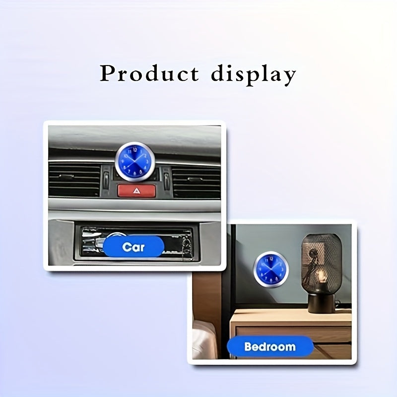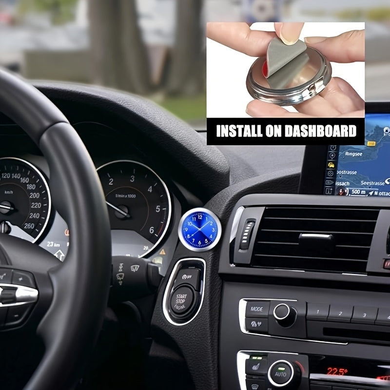 Mini Quartz Car Clock Luminous Dashboard Decor Blue Face Green Numbers