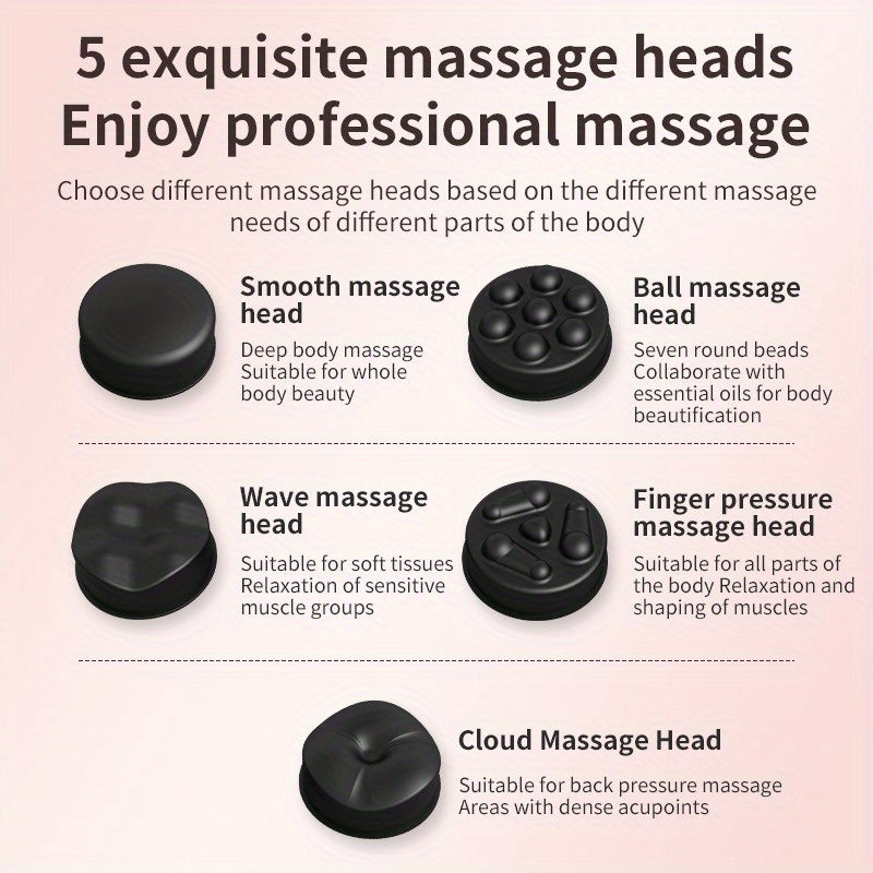Multi-Functional Vibrating Massager with Five Heads and Six-Speed Settings for Full-Body Relaxation