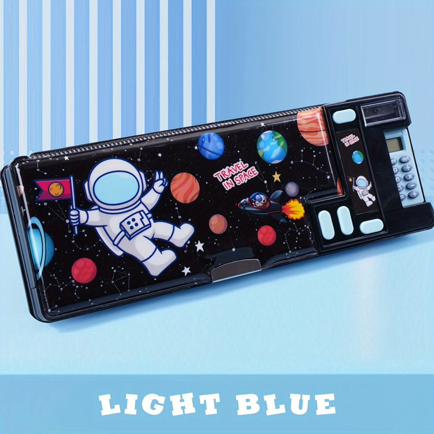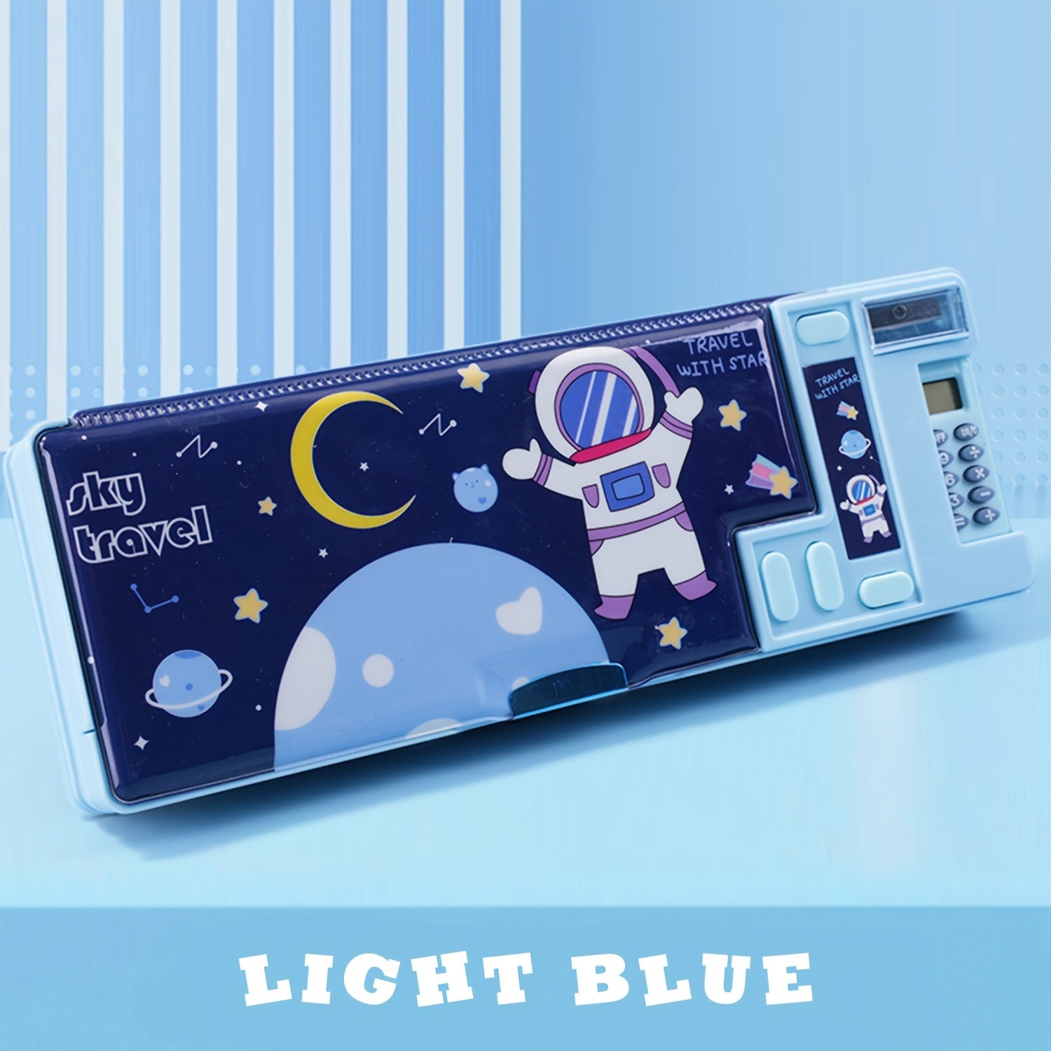 Kids Pencil Case with Calculator and Desk Organizer Pink Purple Design