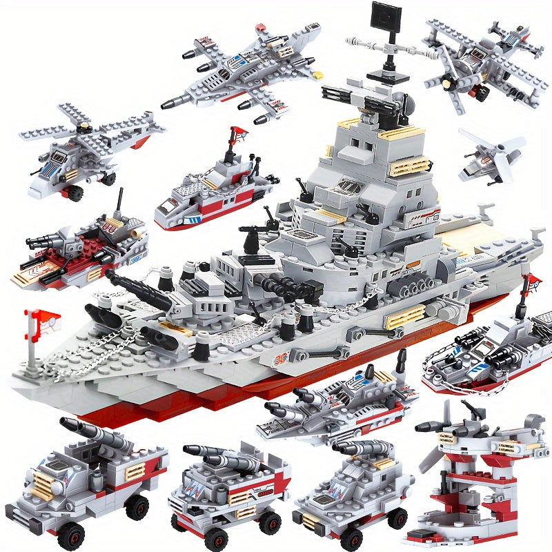 Building Blocks Set for Boys Ages 6-8 Navy War Chariot Ship and Airplane Compatible with Major Construction Bricks