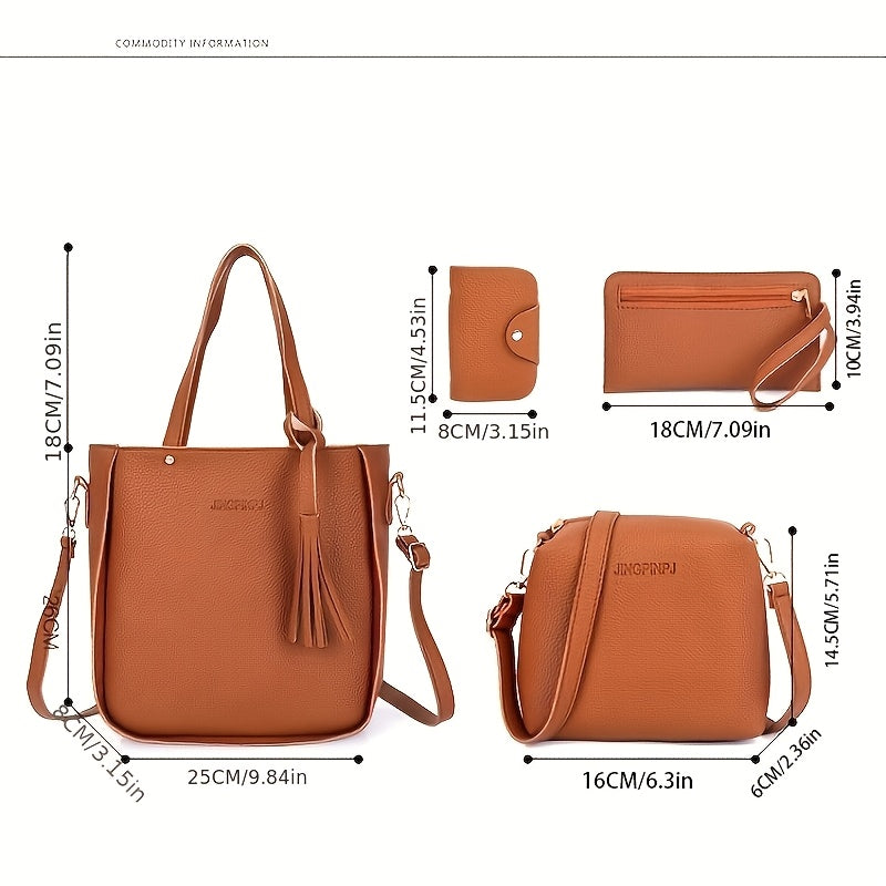 4-Piece Matching PU Handbag Set for Mother and Daughter Black Casual Urban