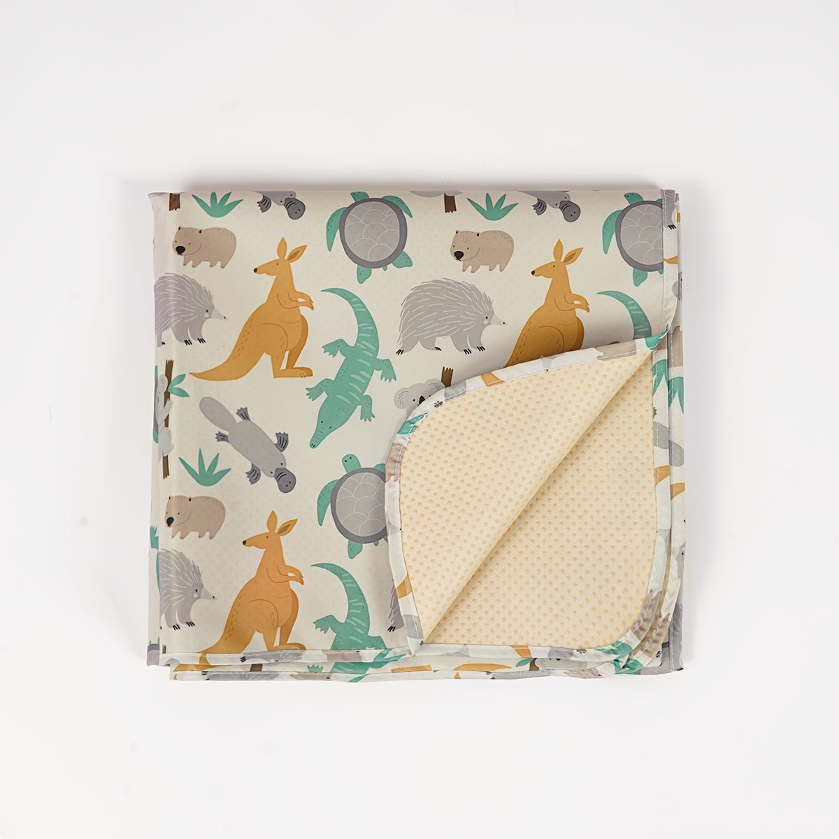Non-Slip Waterproof Play Mat for Kids 109cm Square with Animal Print and Portable Picnic Blanket