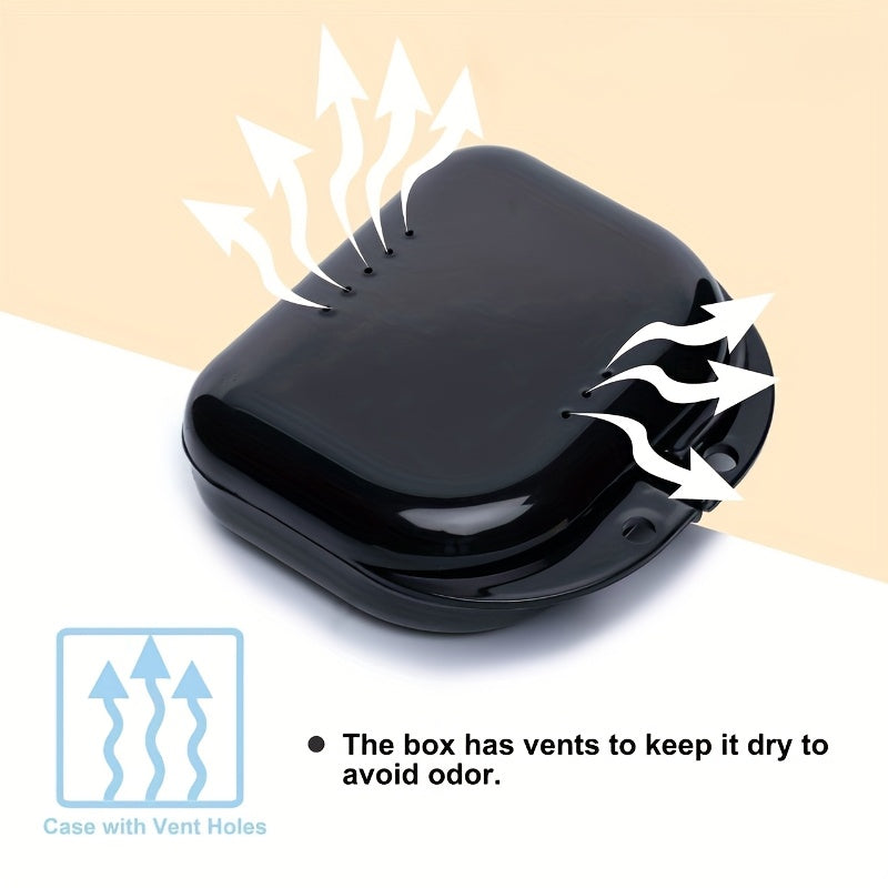 Odor-Free 6/8 Denture Case with Ventilation Holes for Clear Aligners and Night Guards in Black White Yellow Light Purple