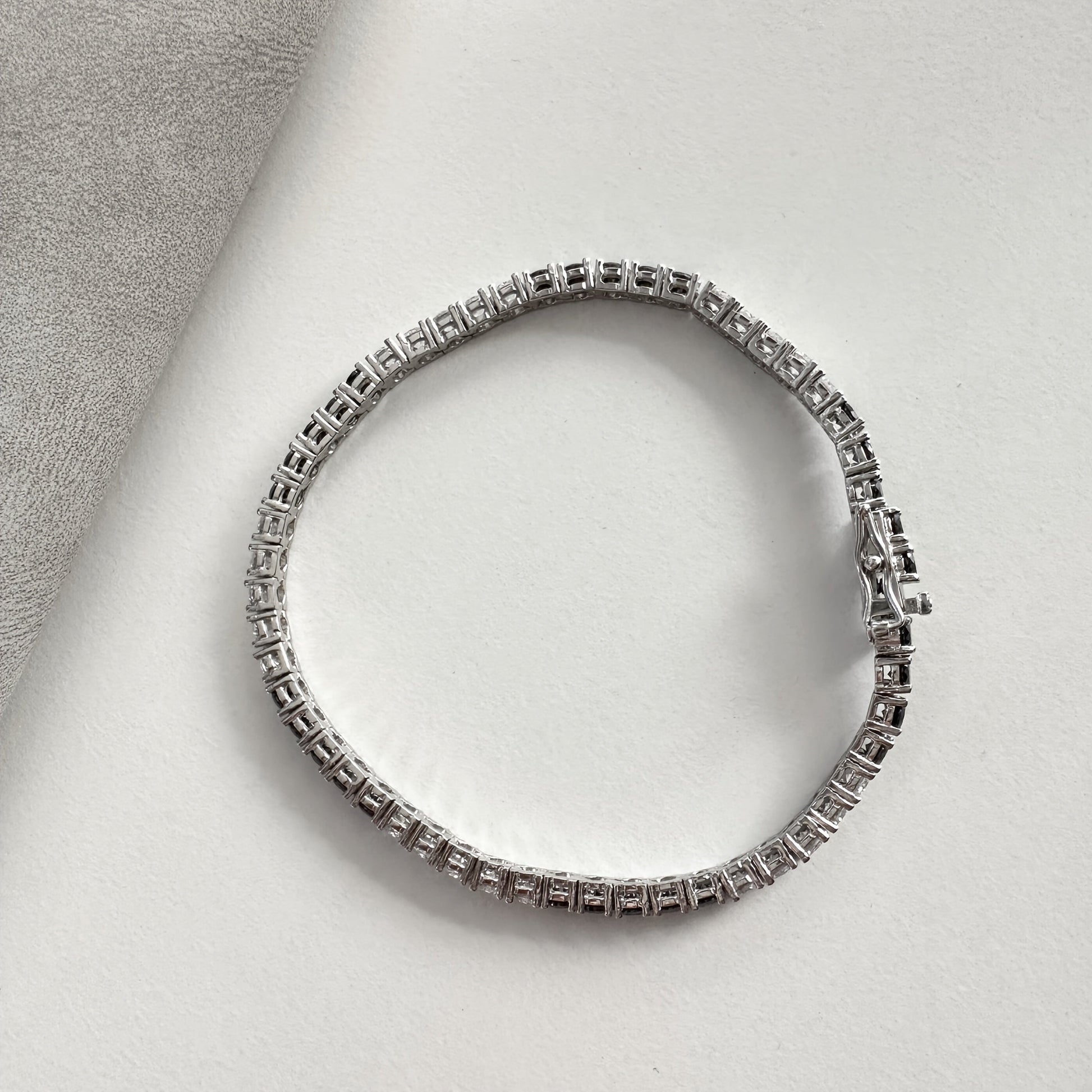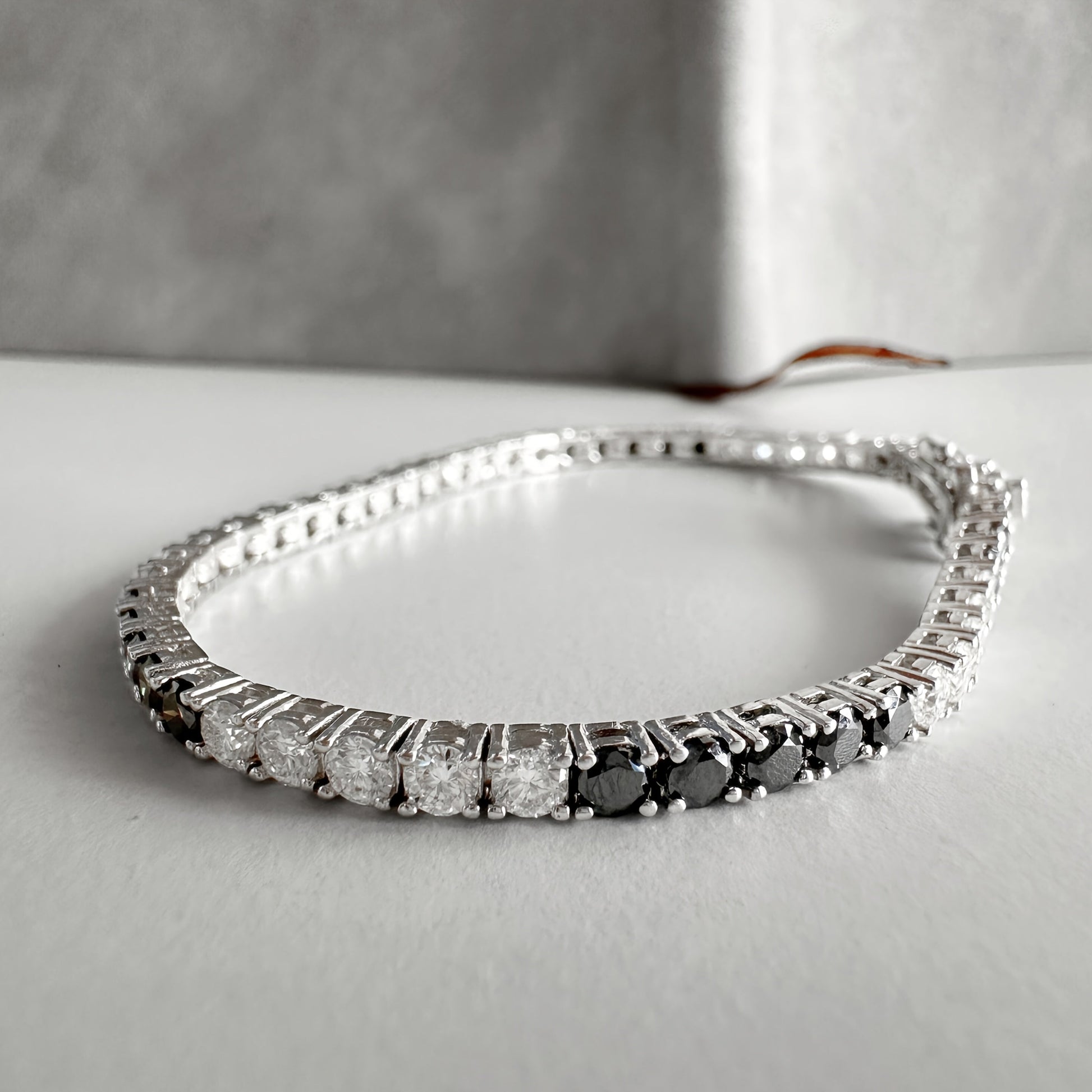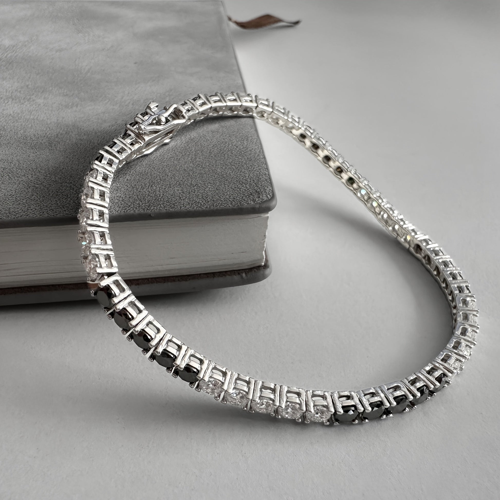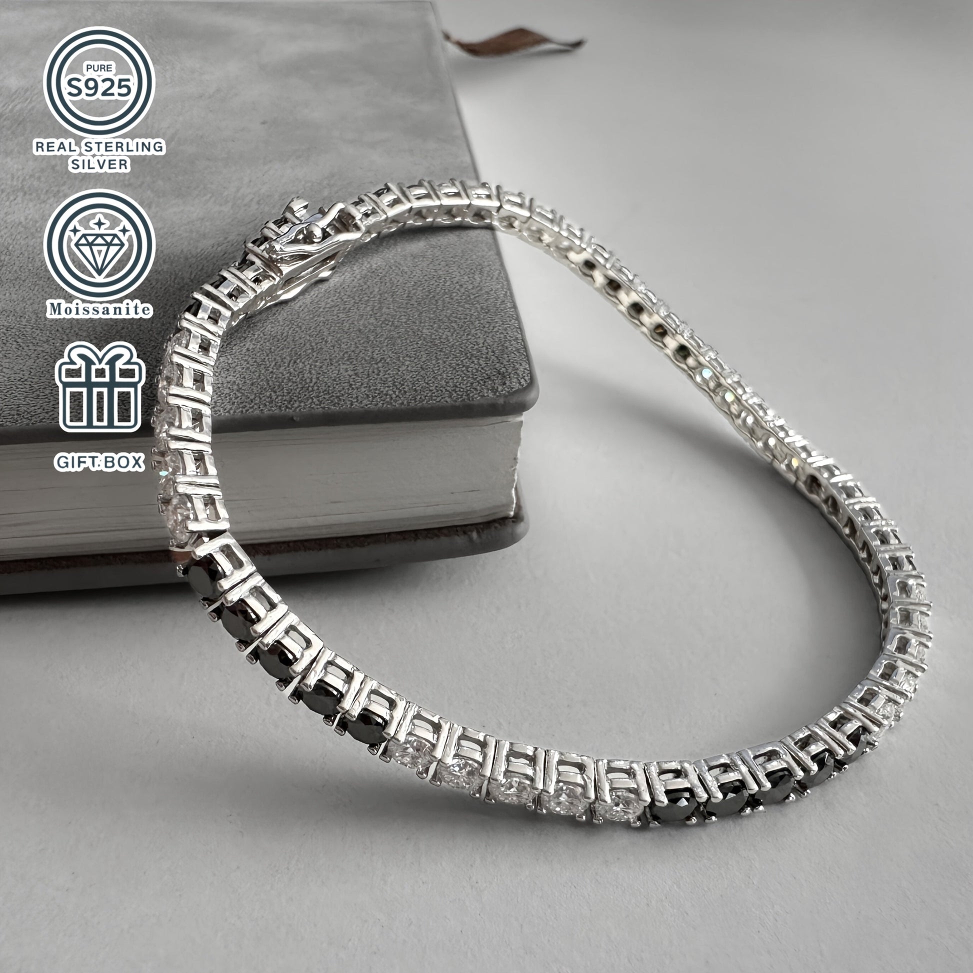 Luxury Silver Tennis Link Bracelet with Black and White Moissanite Stones 0.1 Carats for Women