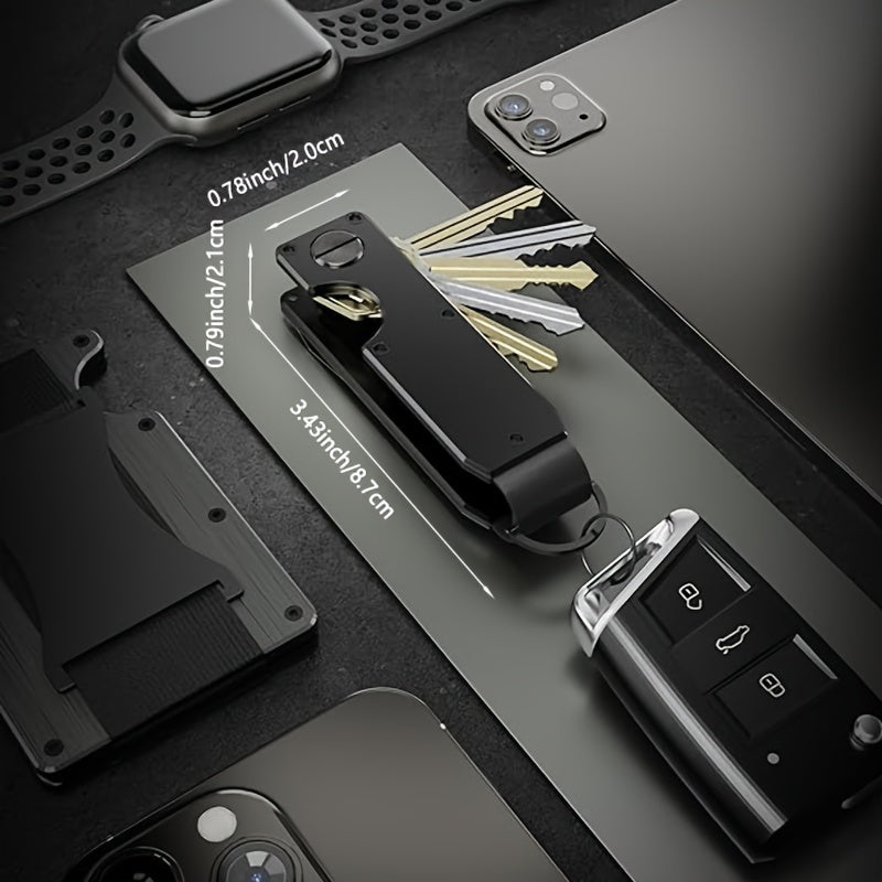 Men's Compact Metallic Key Holder, Minimalist Smart Keychain for 2-6 Keys