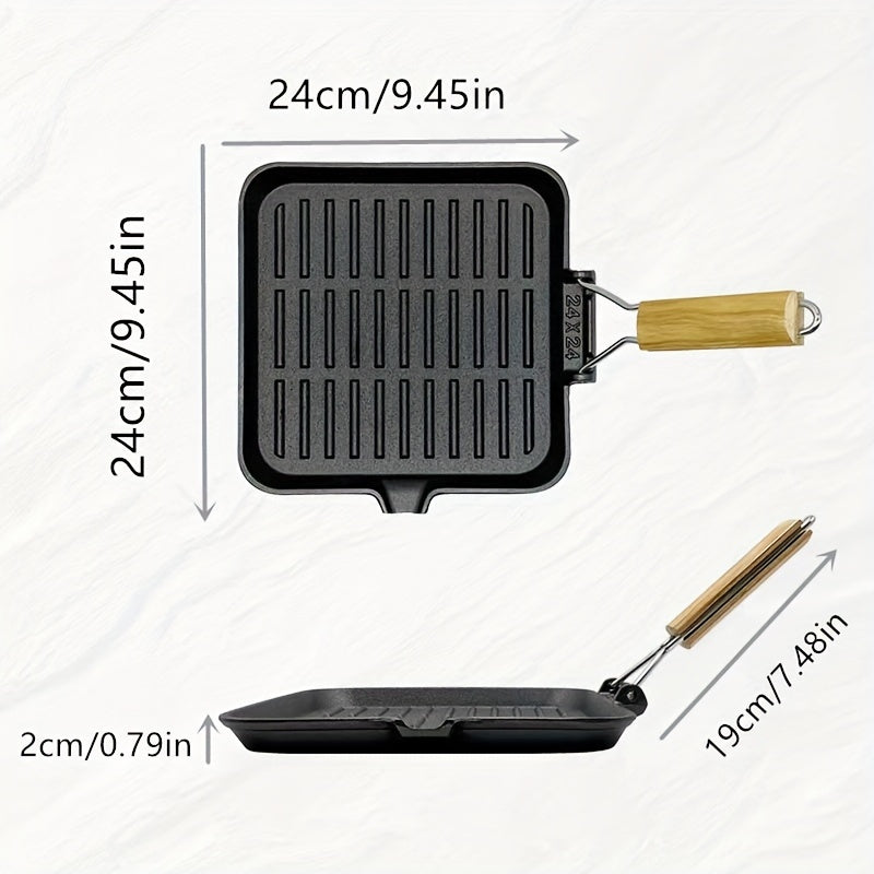Cast Iron Skillet Non-Stick Oven-Safe with Foldable Handle for Cooking Steak