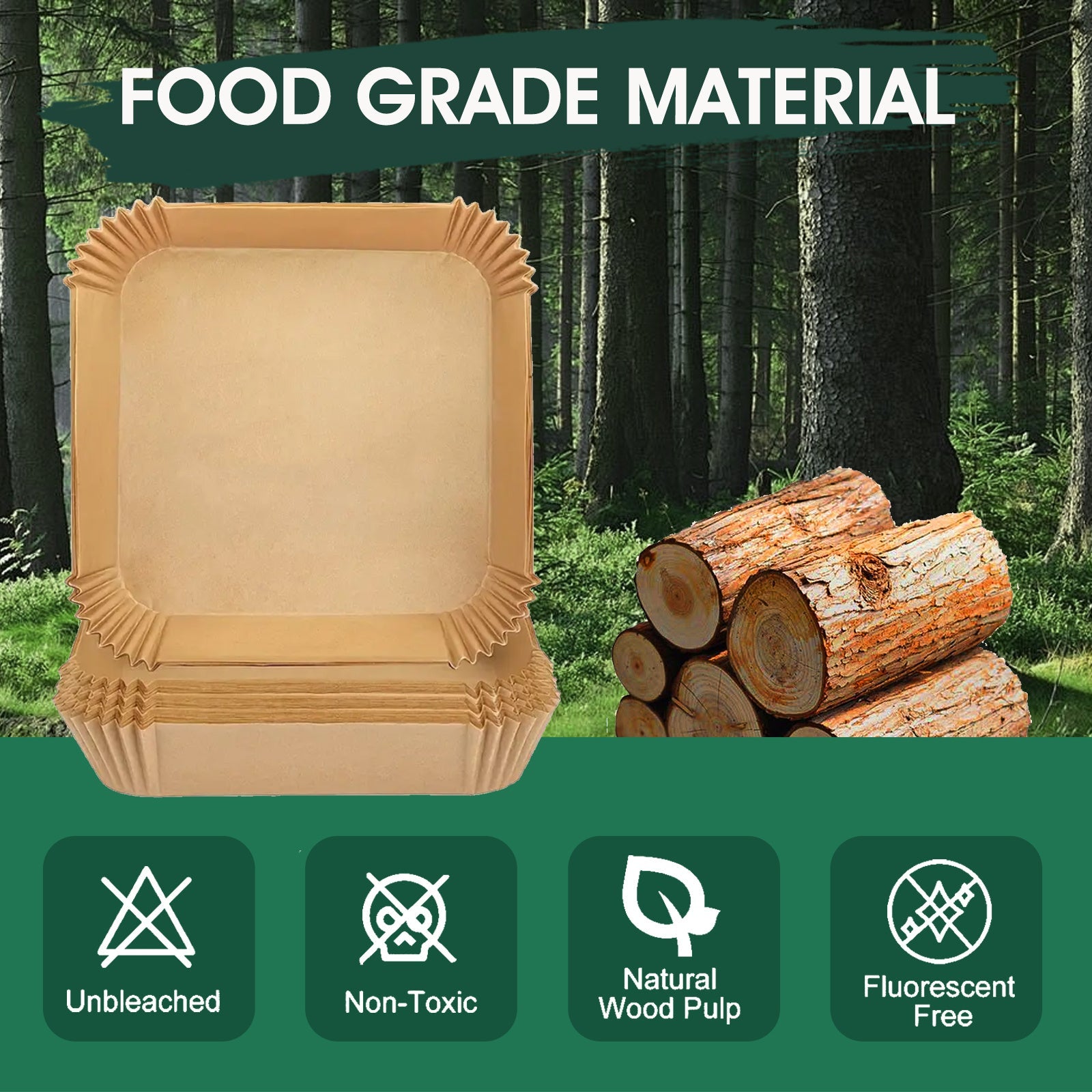 Pack of 100 Non-Stick Square Air Fryer Parchment Paper Liners for Baking Roasting