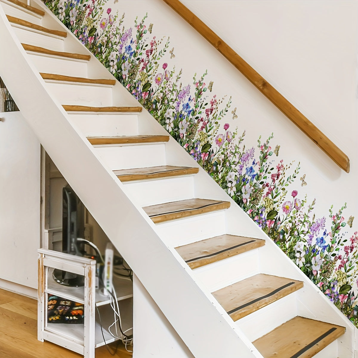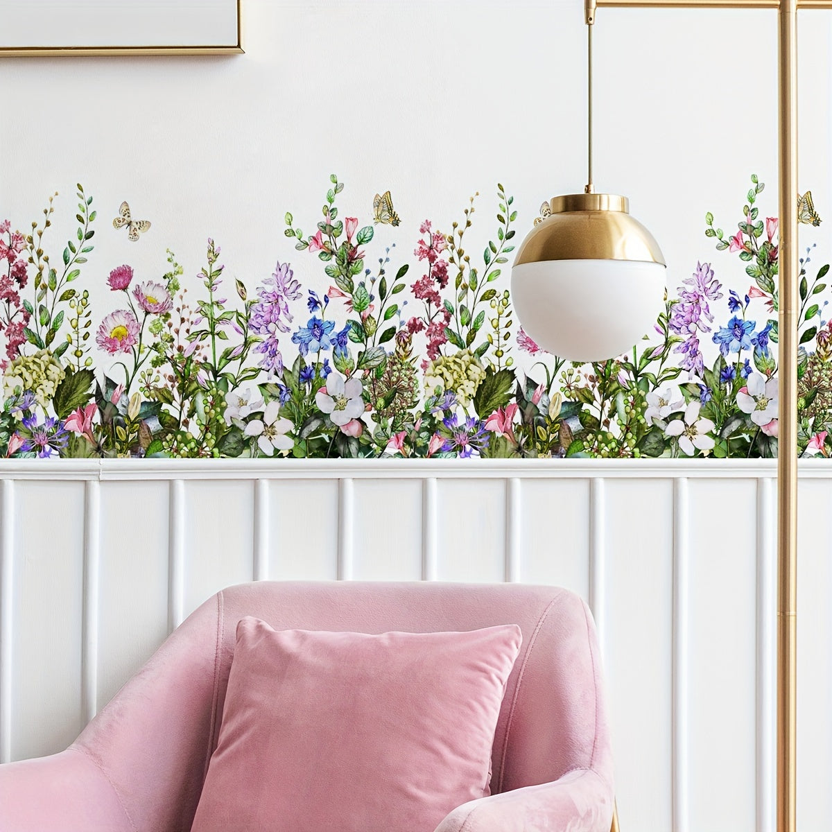 Pair of Plant and Flower Pattern Self-Adhesive Wall Decals for Home Decor Removable Wall Stickers