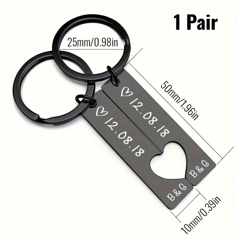 Personalized Stainless Steel Couple Keychains with Date for Anniversary or Birthday