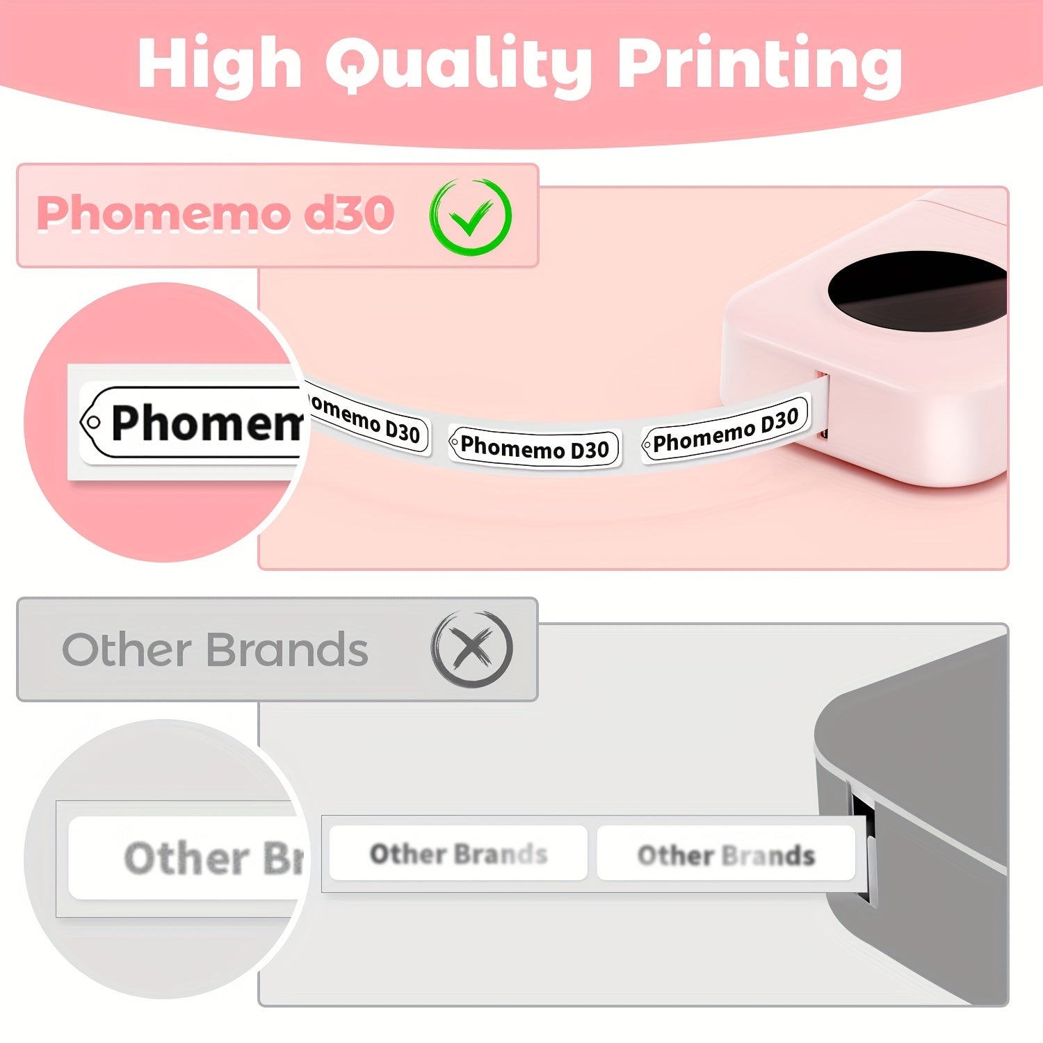 Ideal for home and office label maker2023 Upgrade Version Label Maker - The Phomemo D30 label maker is half the weight and size of the traditional label maker. Equipped with a German thermal print head, DPI increased by 25% for printing providing superior print clarity resulting in hassle-free printing, smooth printing effects, and fast processing. Support continuous label tape and labels in fixed length.Save Money - Direct thermal technology - The D30 label makers are inkless printing and don't require ink, toner, or ribbons. With lots of thermal colorful label tapes of your choice, the cost is tangible and much lower compared to most label-maker printers.(This label maker is Monochrome Printing Output, which only prints black text. We can create color-label artwork, printing with color-patterned label tapes is required. )Multiple Creative Function & Convenient Label Templates - Choose from a wide variety of pre-designed templates including 1000+ symbols, 60+ frames, and a variety of fonts, Convenience and saving time. Easy to create various design label stickers from App with Icon, texts, tables, symbols, logos, barcodes, QR codes, images, time, insert Excel, Scan, Ocr, and Voice RECG, it is fun and effortlesslyWireless & Portable - Mini-size wireless -connected Phomemo label printer for Convenient & Fast printing, easy to create labels from smart mobile devices. Built-in durable and recharge battery for long working time, slide into your pocket, easy to carry anywhere.Wide Application - Phomemo D30 label makers are used widely in organizing home supplies - storage, food date marking, classifying cosmetics items, jar stickers; School and office files classification, cable identification, personal item identification, name tags; Small business - price tags, jewelry tags and more.