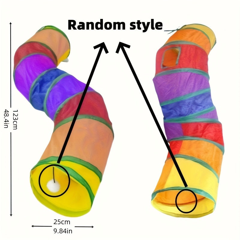 Plaid Foldable Cat Tunnel with Play Ball Durable Polyester Interactive Kitten Toy