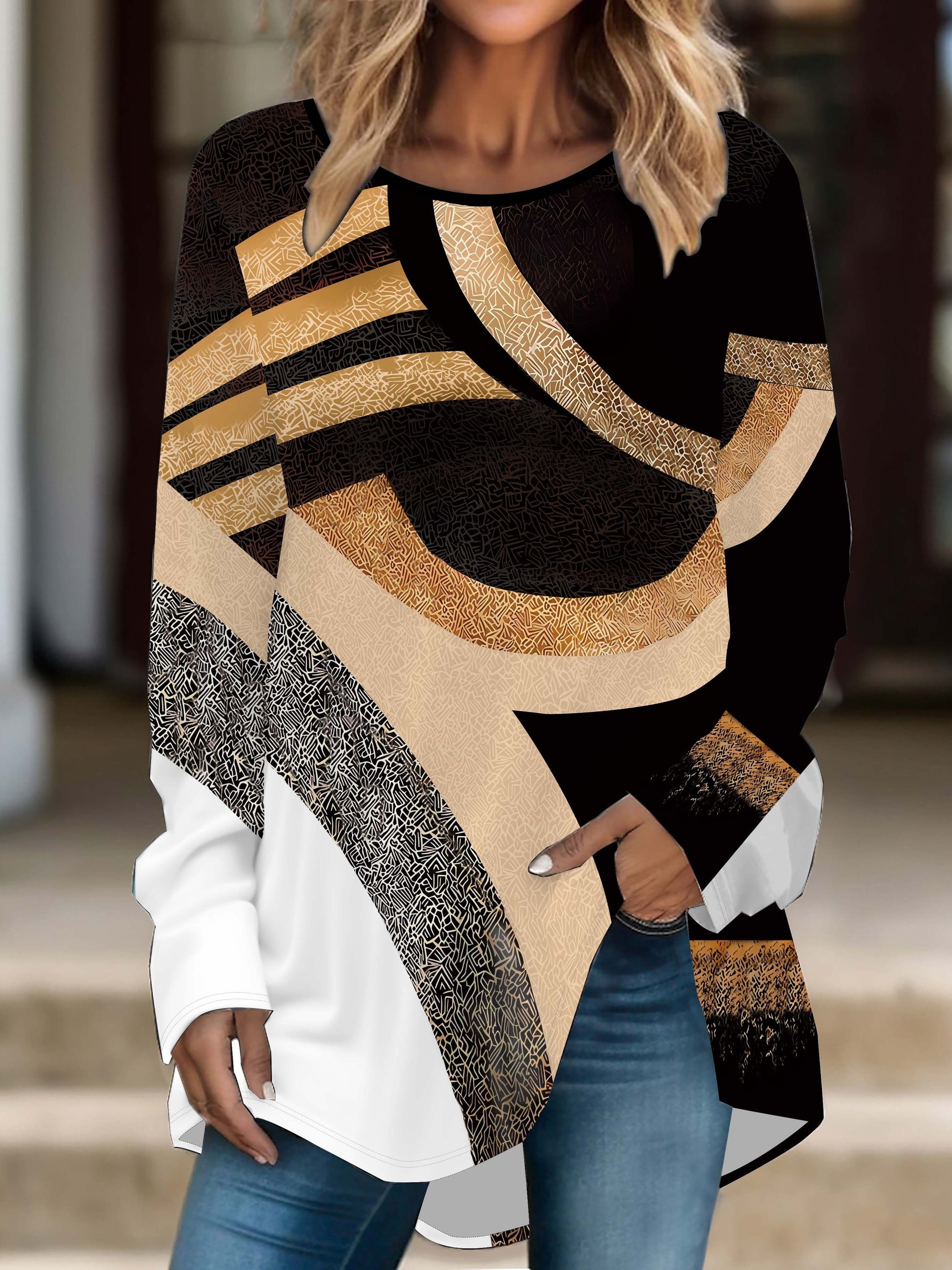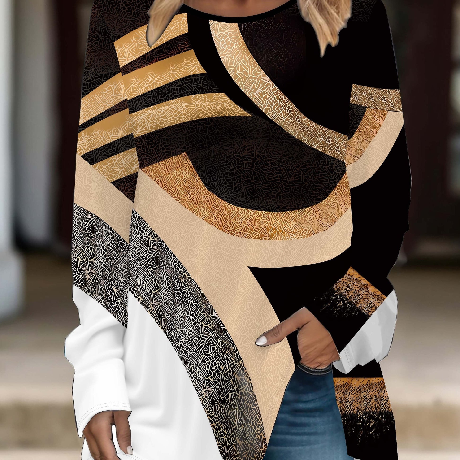 Plus Size Women's 3D Geometric Pattern Long Sleeve T-Shirt Polyester Stretch Fabric