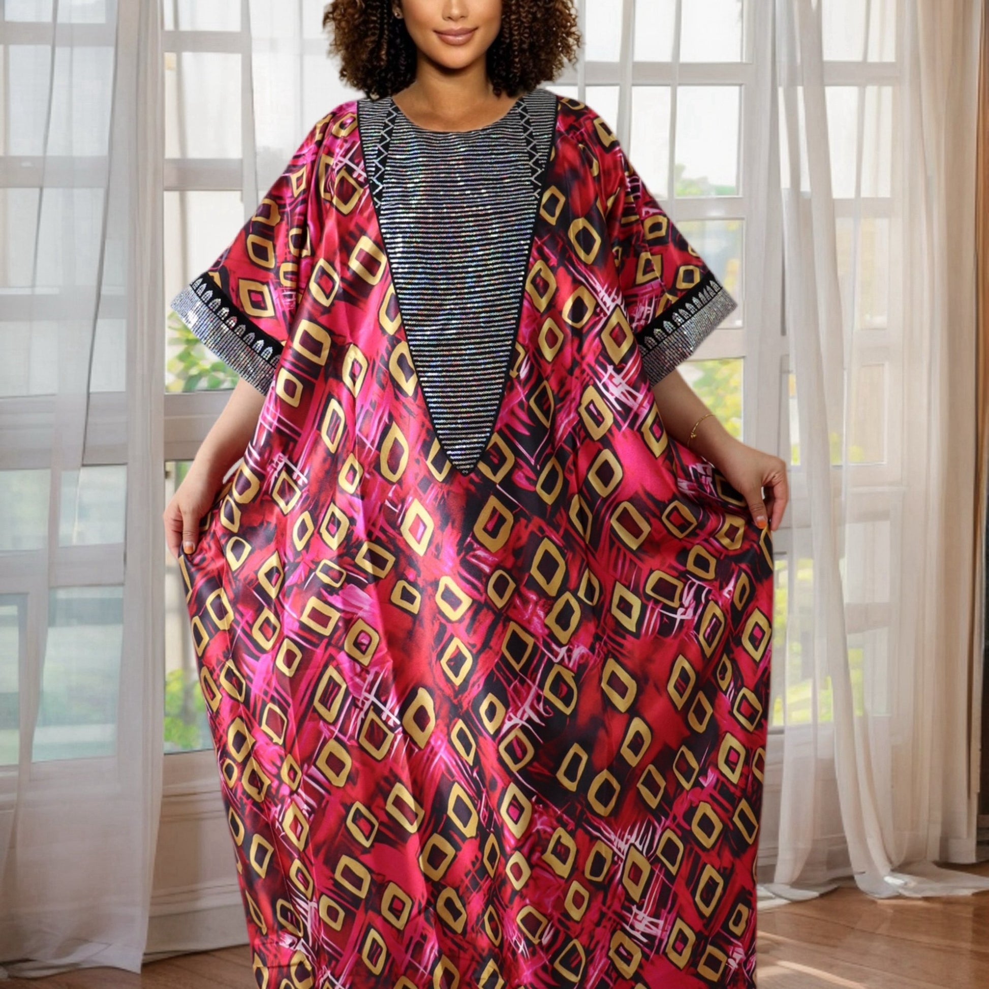 Plus Size African Sequin Printed Satin Long Dress