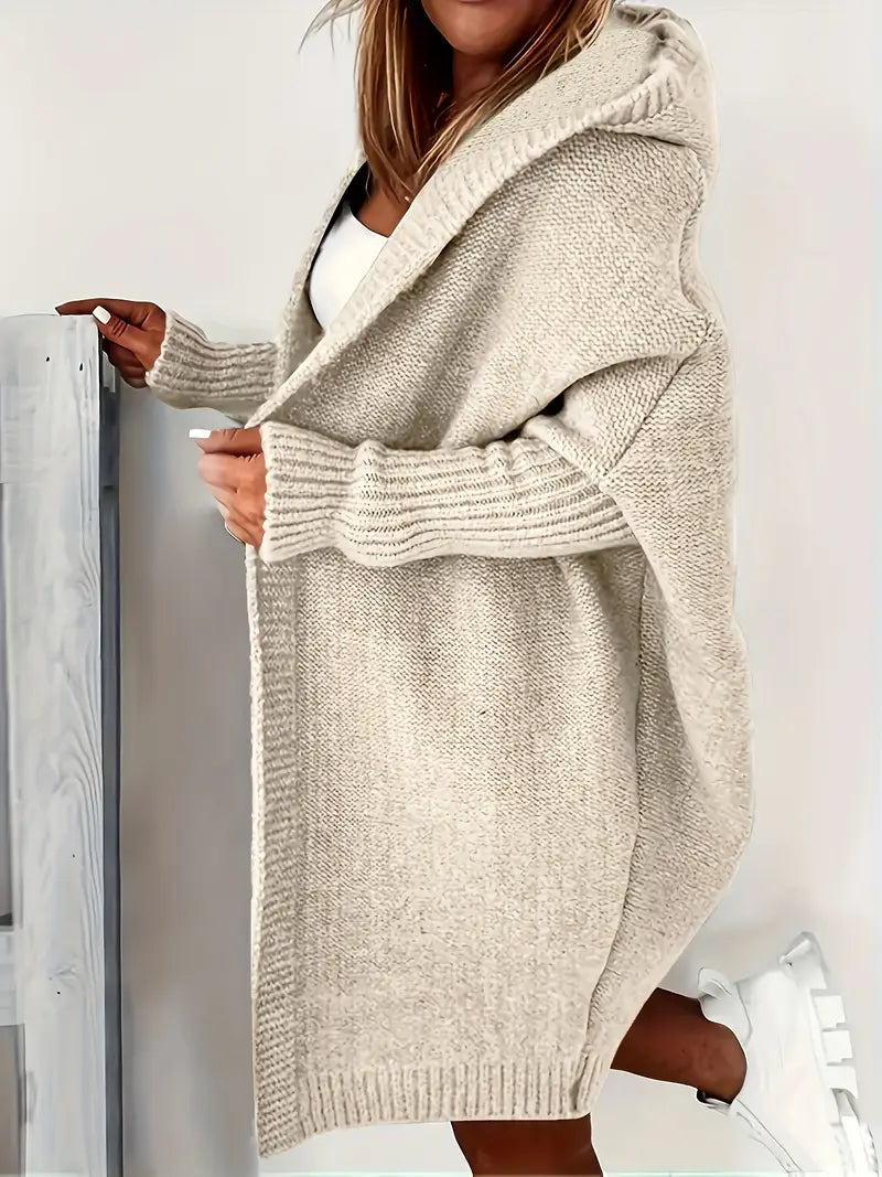 Plus Size Gray Cardigan with Batwing Sleeves for Spring Fall Casual Knit Polyester