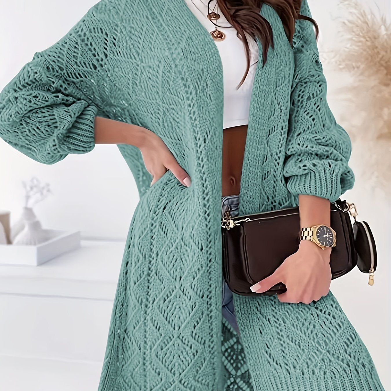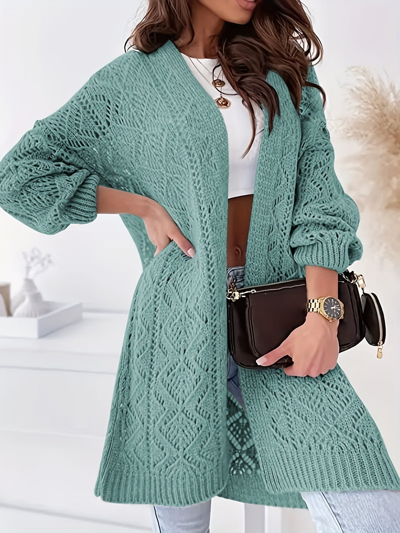 Plus Size Knitted Cardigan Open Front Long Sleeve Casual Womens Clothing