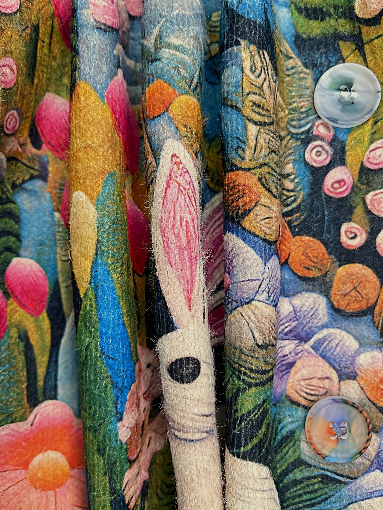 Plus Size Knitted Effect Cardigan with Rabbit Design V-Neck Long Sleeve