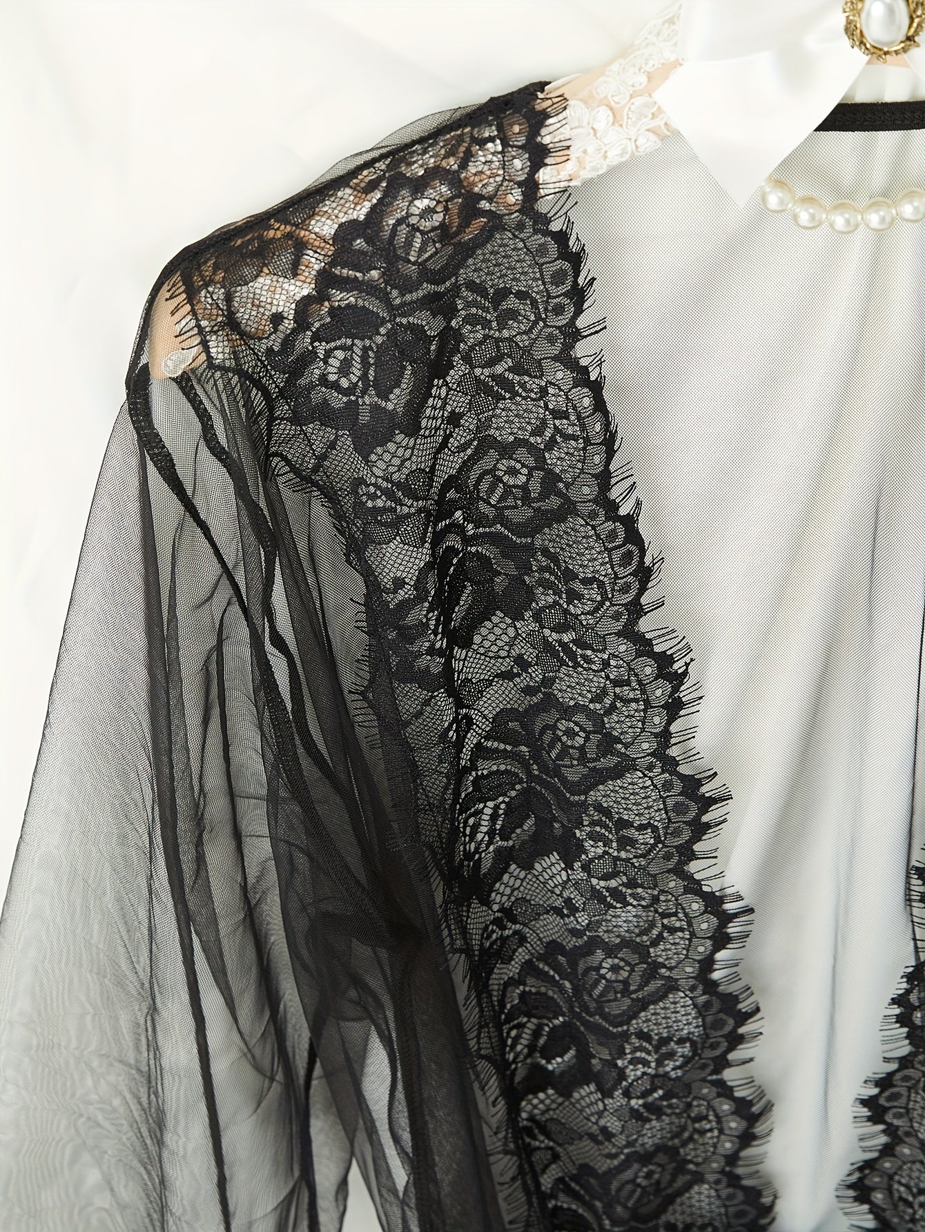 Plus Size Lingerie Set Women's Contrast Lace Semi Sheer Robe Bra Thong
