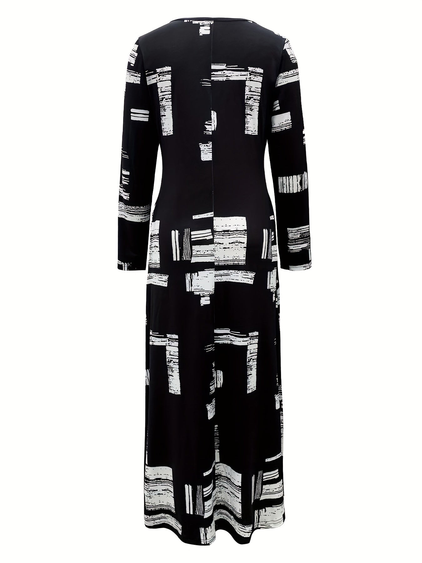 Plus Size Long Sleeve Crew Neck Dress with Pockets Patchwork Knit Fabric All-Season