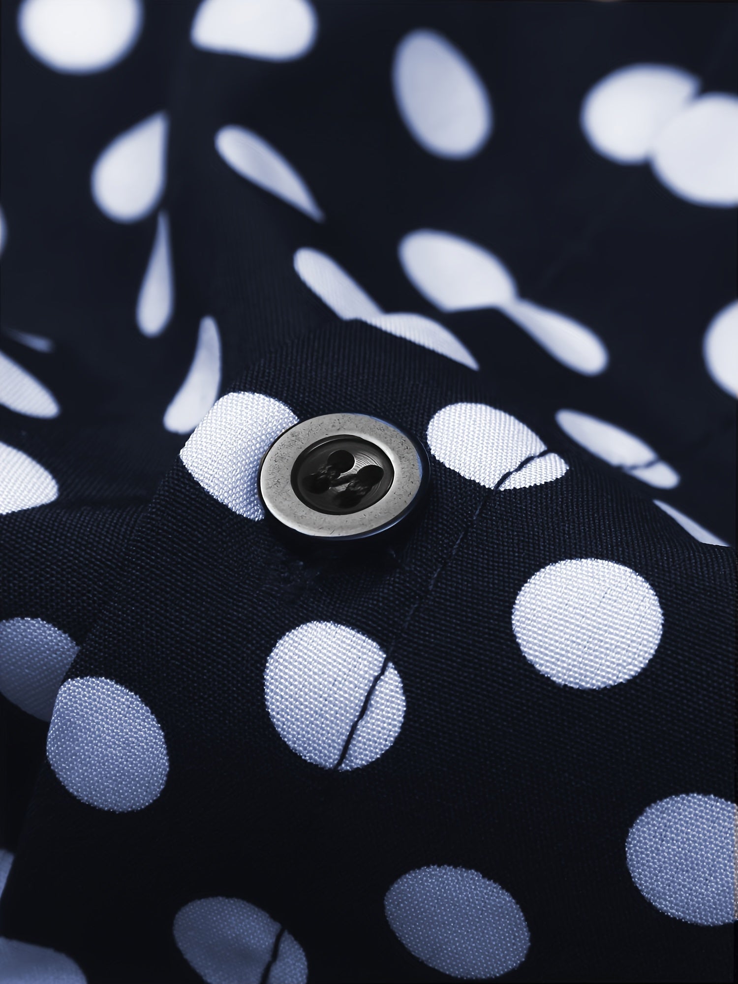Plus Size Men's White Polka Dot Water Pattern Long Sleeve Casual Shirt