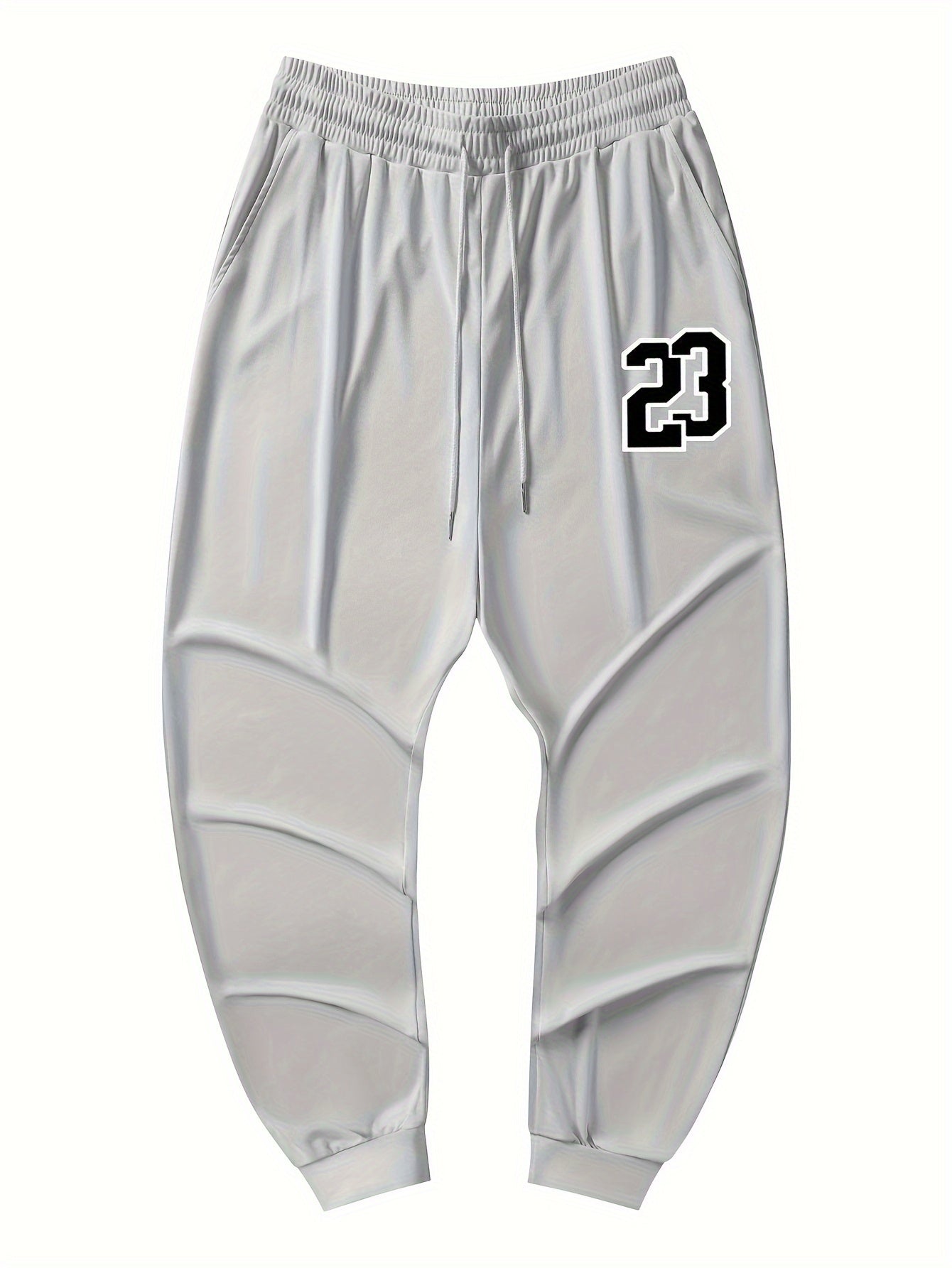 Plus Size Navy Blue Joggers with Number 23 Print Elastic Waistband Machine Washable