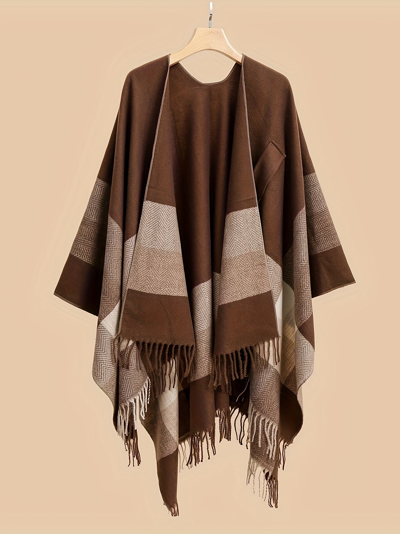 Plus-Size Open-Front Fringe Shawl Cardigan Casual Cape Sweater for Autumn Winter