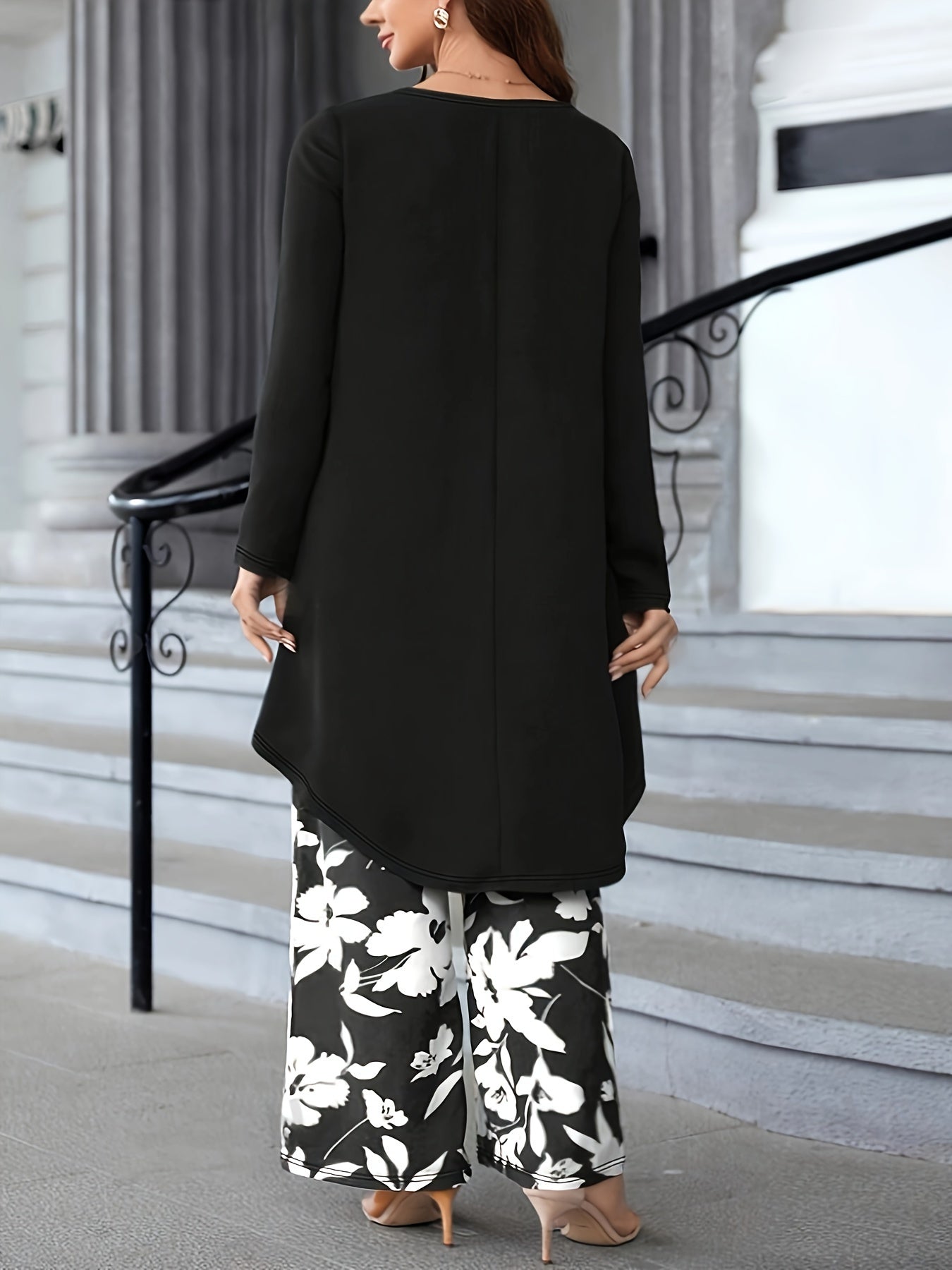 Plus Size Two-Piece Set with High Low Hem Top and Pants Vacation Wear