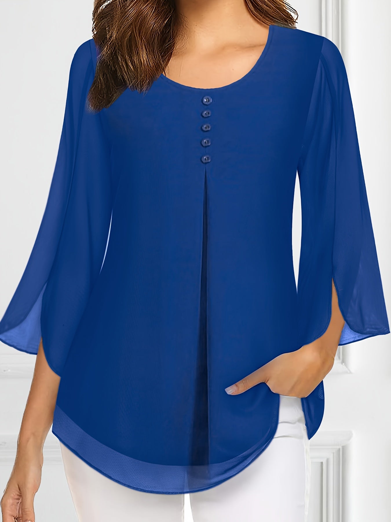 Plus Size Women's Blouse Long Sleeve Decor Button Blue All-Season Casual Formal