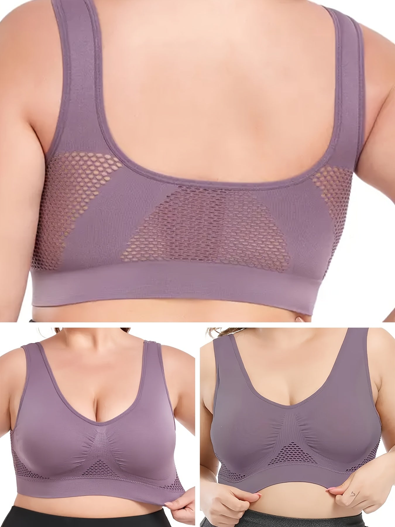 Plus Size Women's Breathable Mesh Wireless Padded Sports Bra Light Pink