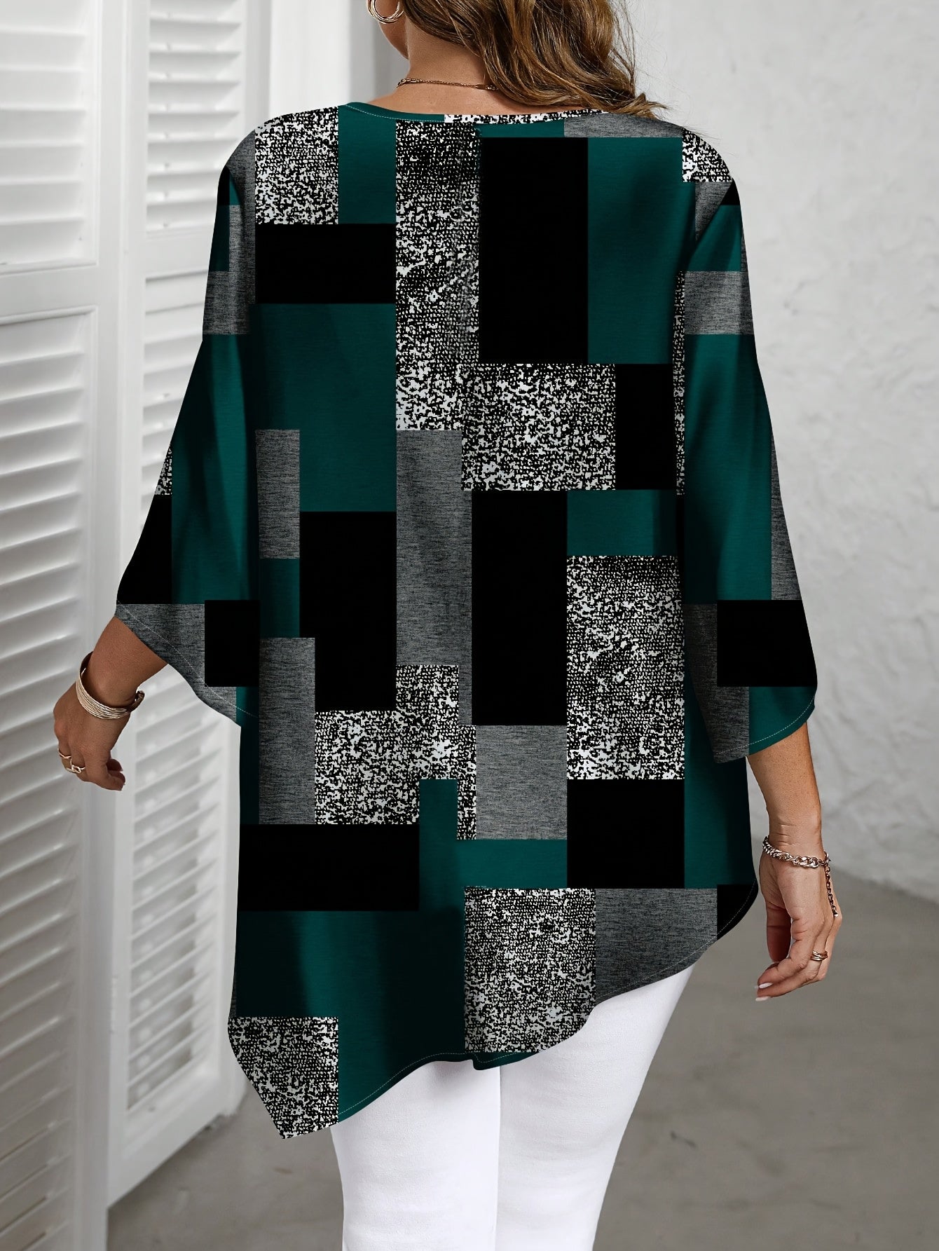 Plus Size Women's Casual Blouse Lightweight Summer Top with Geometric Print
