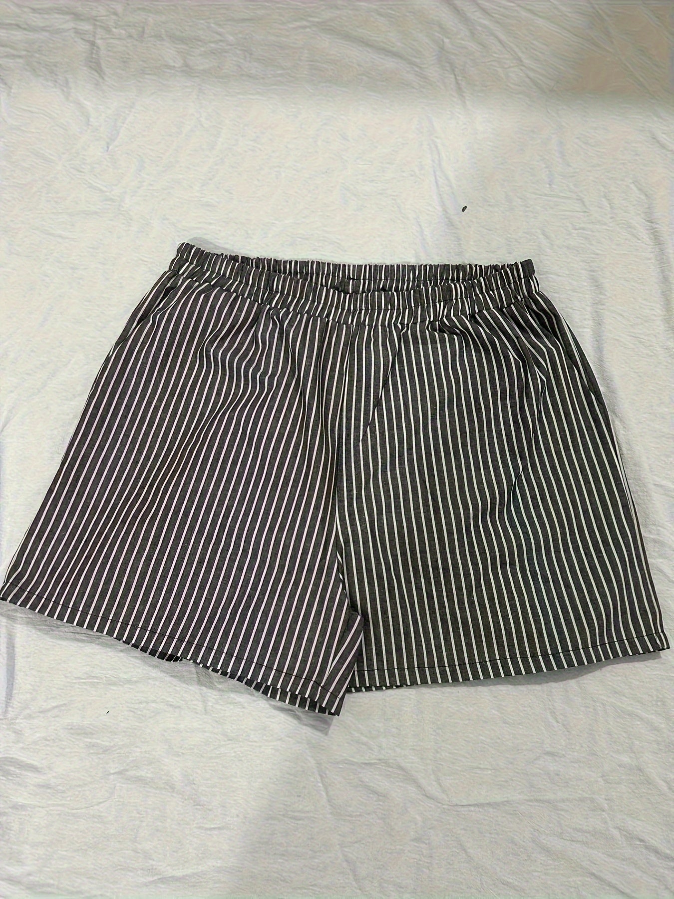 Plus Size Women's Casual Striped Polyester Blend Shorts with Pockets
