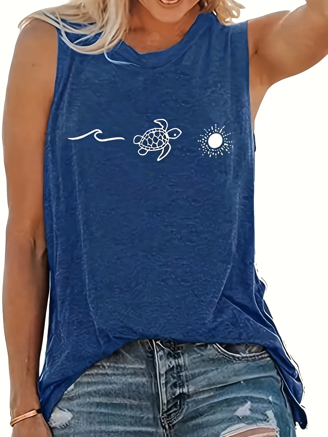 Plus Size Women's Cotton Turtle Neck Sun Print Tank Top