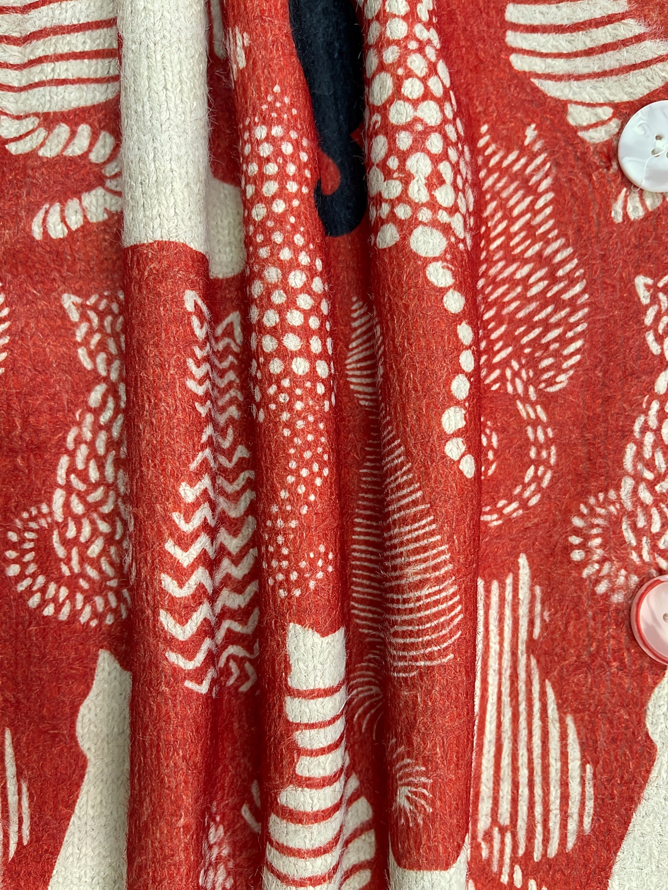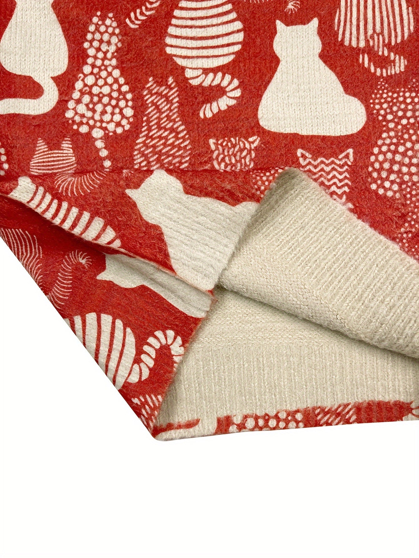 Plus Size Women's Cozy V-Neck Cardigan with Cat Print Long Sleeve Sweater