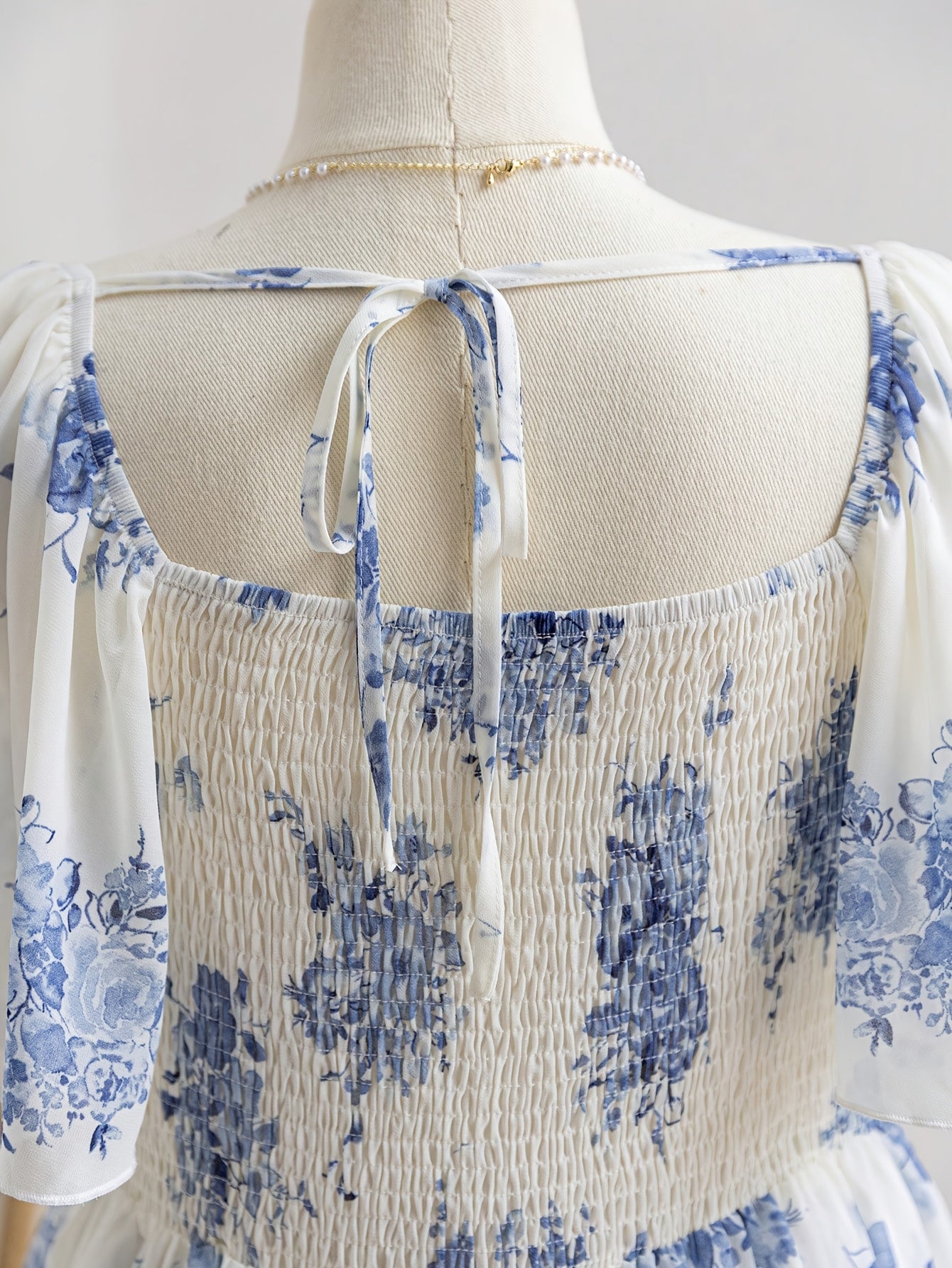 Plus Size Women's Floral Print A-Line Top Ruffled Neck Short Sleeve Polyester