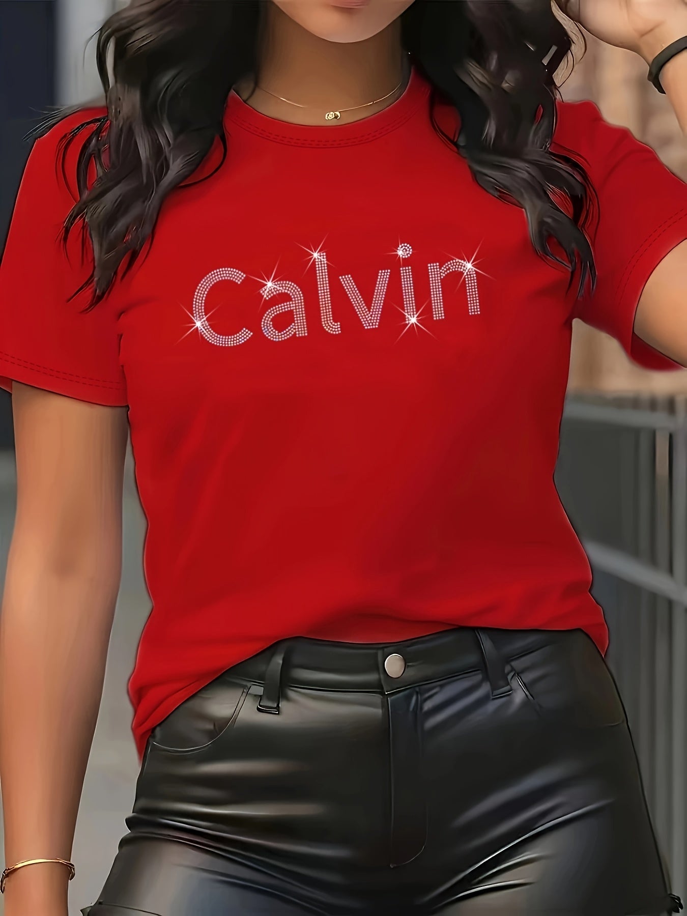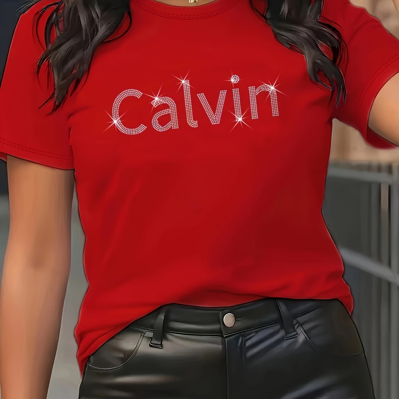 Plus Size Women's Glitter Graphic T-Shirt Black Short Sleeve Casual Top